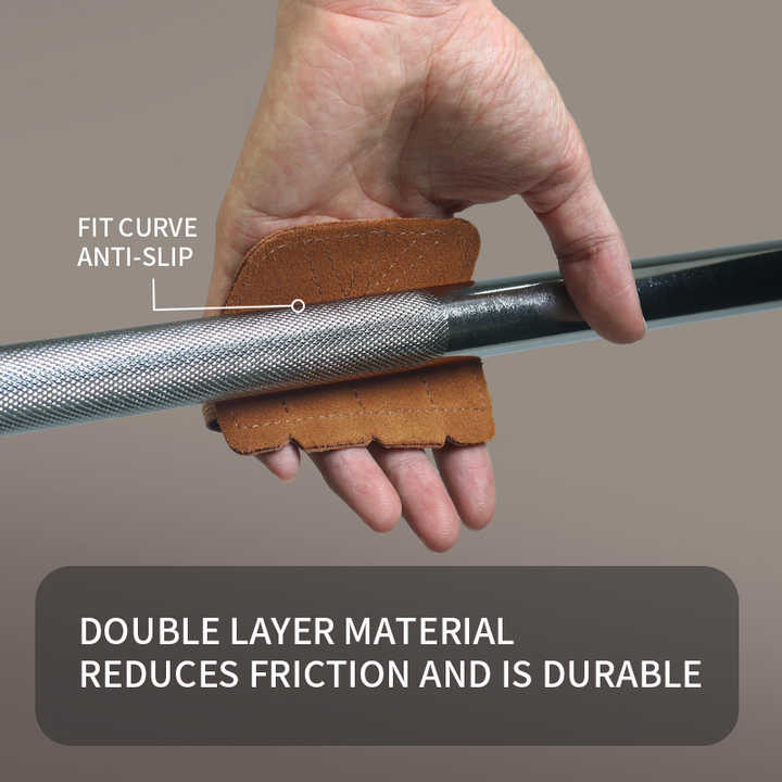 2 Pairs Brown Premium Leather Grip Protection for Fitness | 4-Finger Cowhide Weightlifting Gloves – Durable, Non-Slip, and Abrasion-Resistant Support
