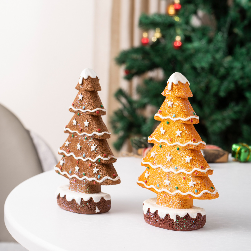 2 Pcs (1 Yellow + 1 Brown) Charming Gingerbread Christmas Tree Figurine – Festive Resin Holiday Table Decor Ornament