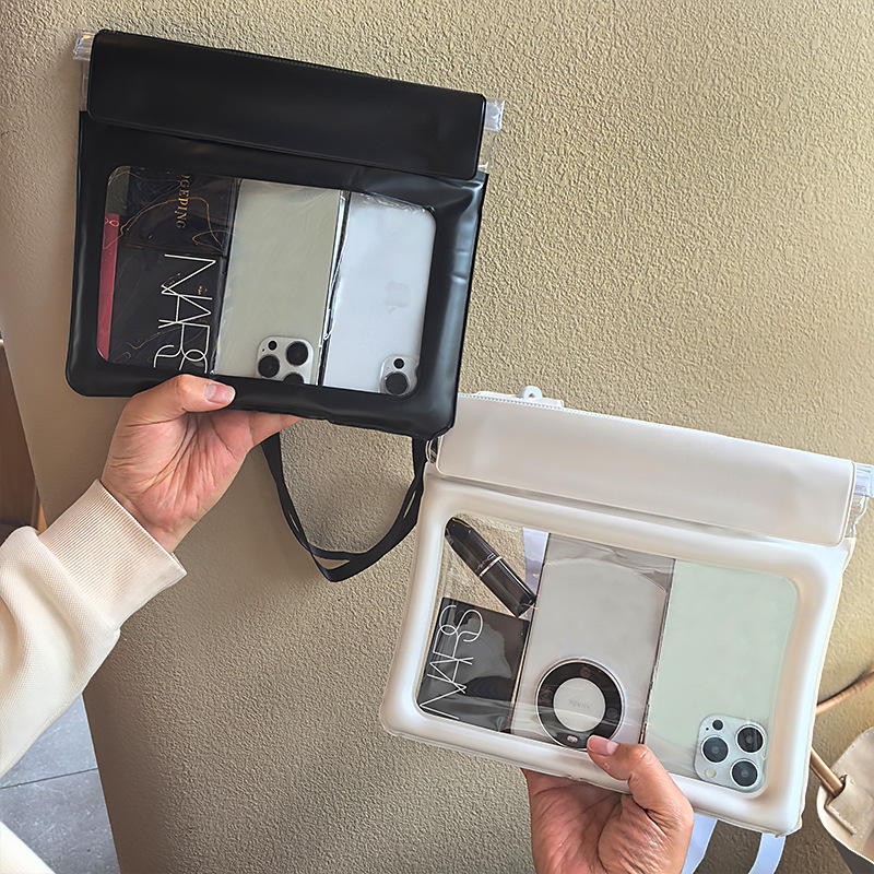 - Buoyant design with inflatable airbag frame to prevent sinking and allow the pouch to float on water