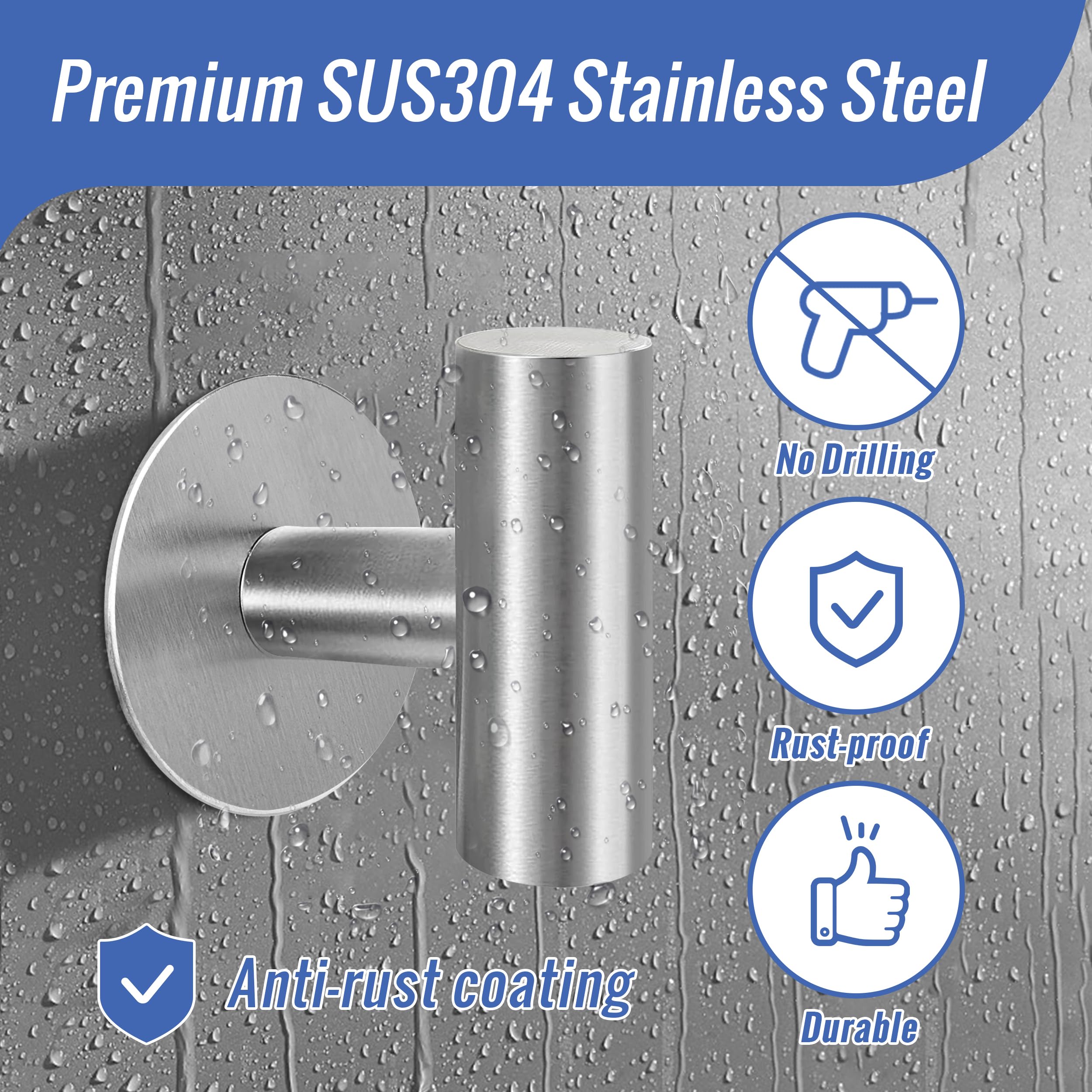 High quality 304 stainless steel towel hooks, anti-rust shower hooks. Strong metal wall hooks, durable. Round design, suitable for modern kitchen, bathroom, toilet, bedroom, office, library, living room, garage, etc