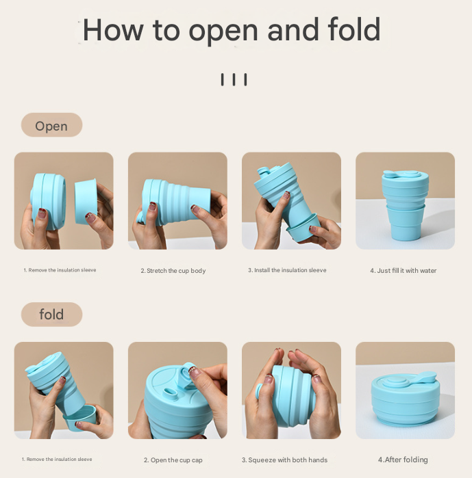 - Materials: Food-grade silicone (cup body), PP (lid and insulating sleeve)