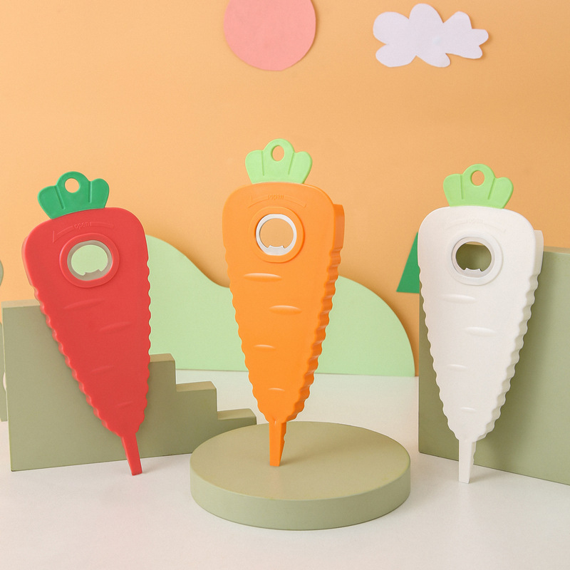 This set includes two white carrot-shaped multi-function bottle openers designed for opening jars, cans, and bottles. Made from durable ABS material, these openers are lightweight, ergonomic, and easy to handle. Their playful carrot shape adds a fun touch to your kitchen or bar, and the magnetic base allows for convenient storage.