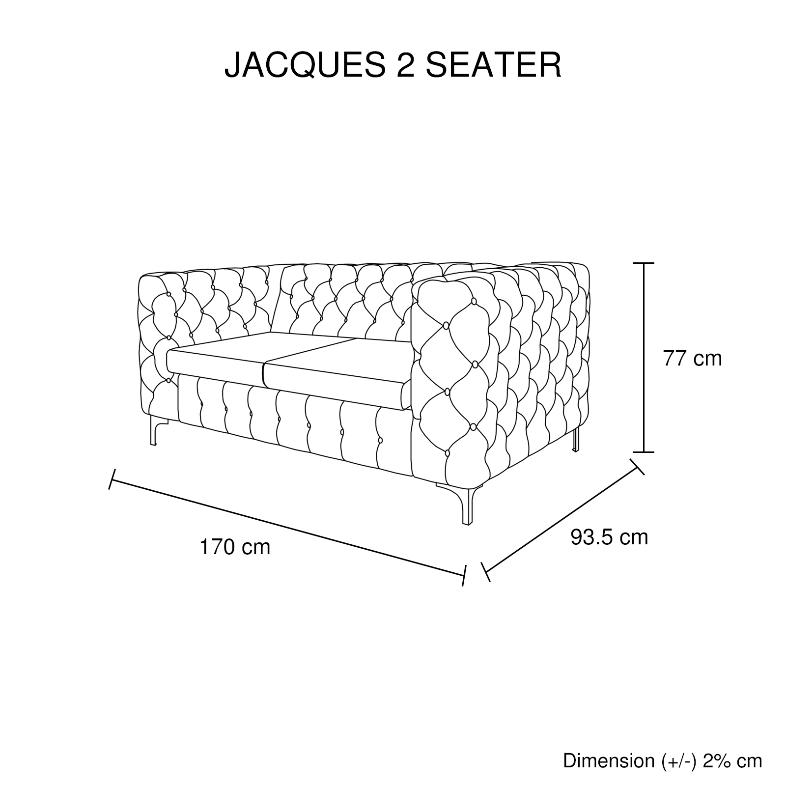 Transform your living space with this elegant 2 Seater Sofa, designed to provide both style and comfort. Upholstered in luxurious velvet fabric, this sofa features a classic button tufted design and sturdy metal legs, making it a perfect addition to any modern home.
