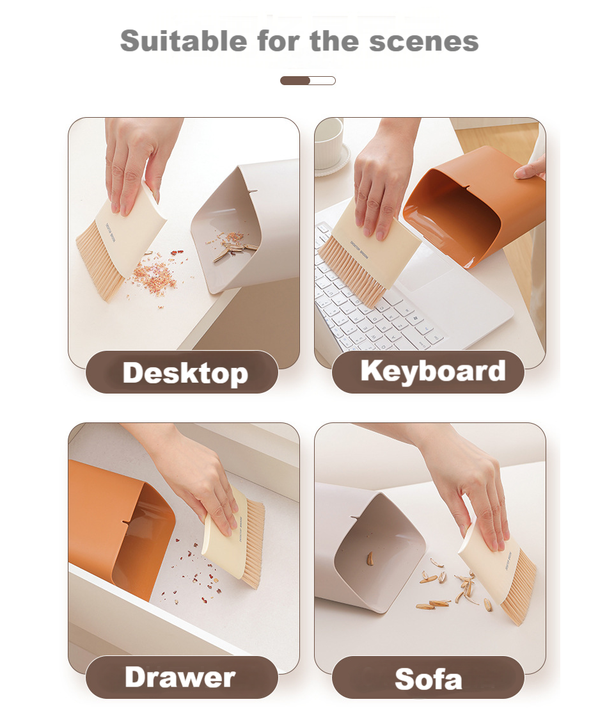 This mini desktop sweeper and trash bin set is designed to keep your workspace tidy and organized. Its compact size makes it ideal for small cleaning tasks on desks, tables, or counters, providing a quick and efficient cleaning solution with a sleek and modern appearance.