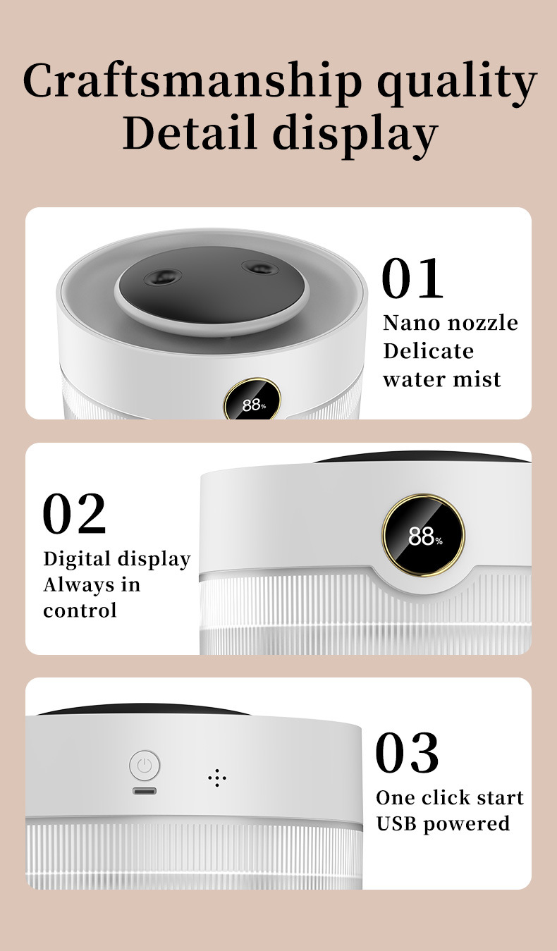 This large capacity humidifier is designed to improve air quality and create a comfortable environment in your home or office. It features a sleek design with modern functionality, making it suitable for various spaces. The device offers quiet operation and efficient performance to meet your humidity needs effectively.
