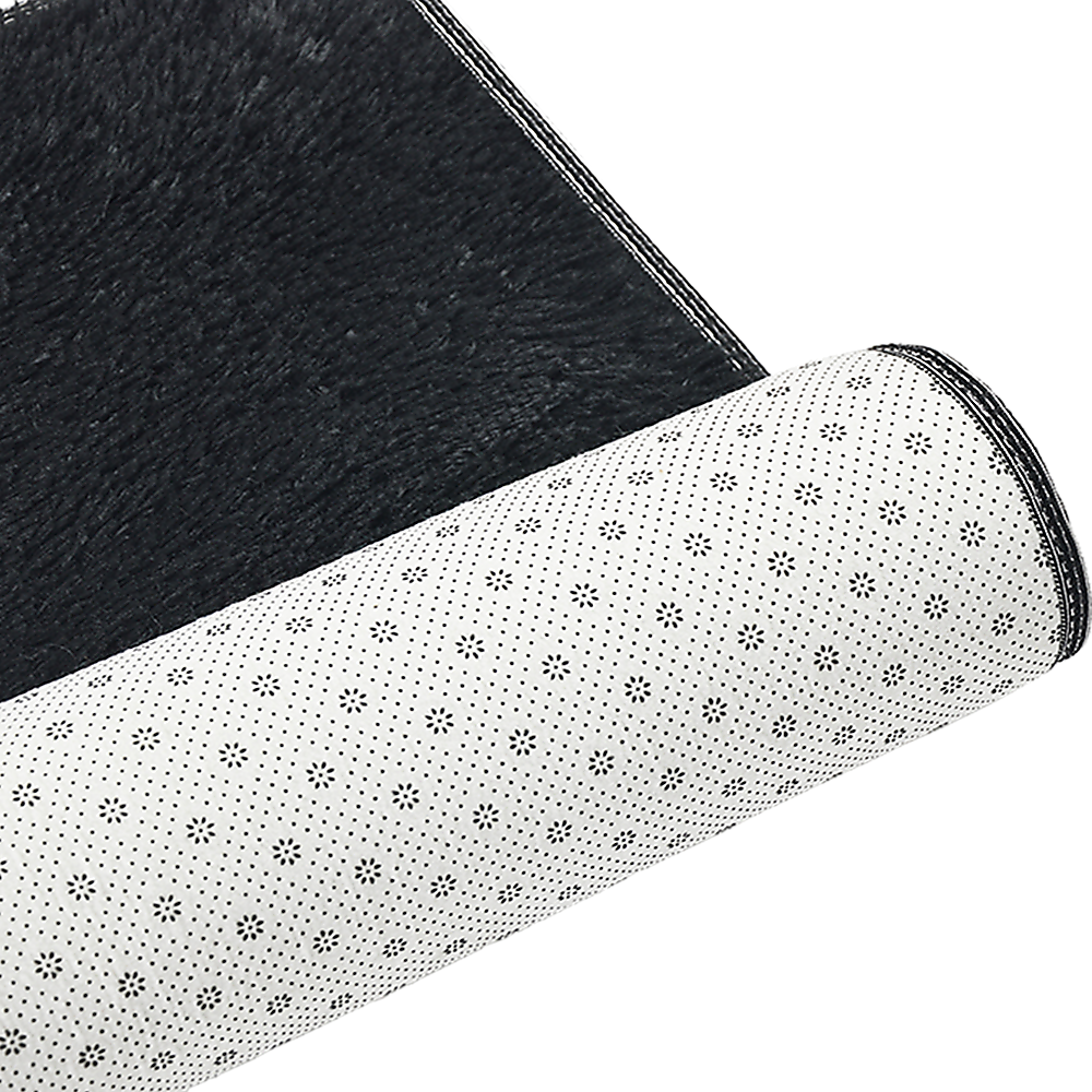 This large shaggy rug features a sleek black color that complements various interior styles. Its soft, thick pile provides a comfortable surface, while the foam backing offers additional cushioning and insulation. Ideal for bedrooms, living rooms, or casual spaces, it adds a contemporary touch and helps maintain a warm or cool environment depending on the season.