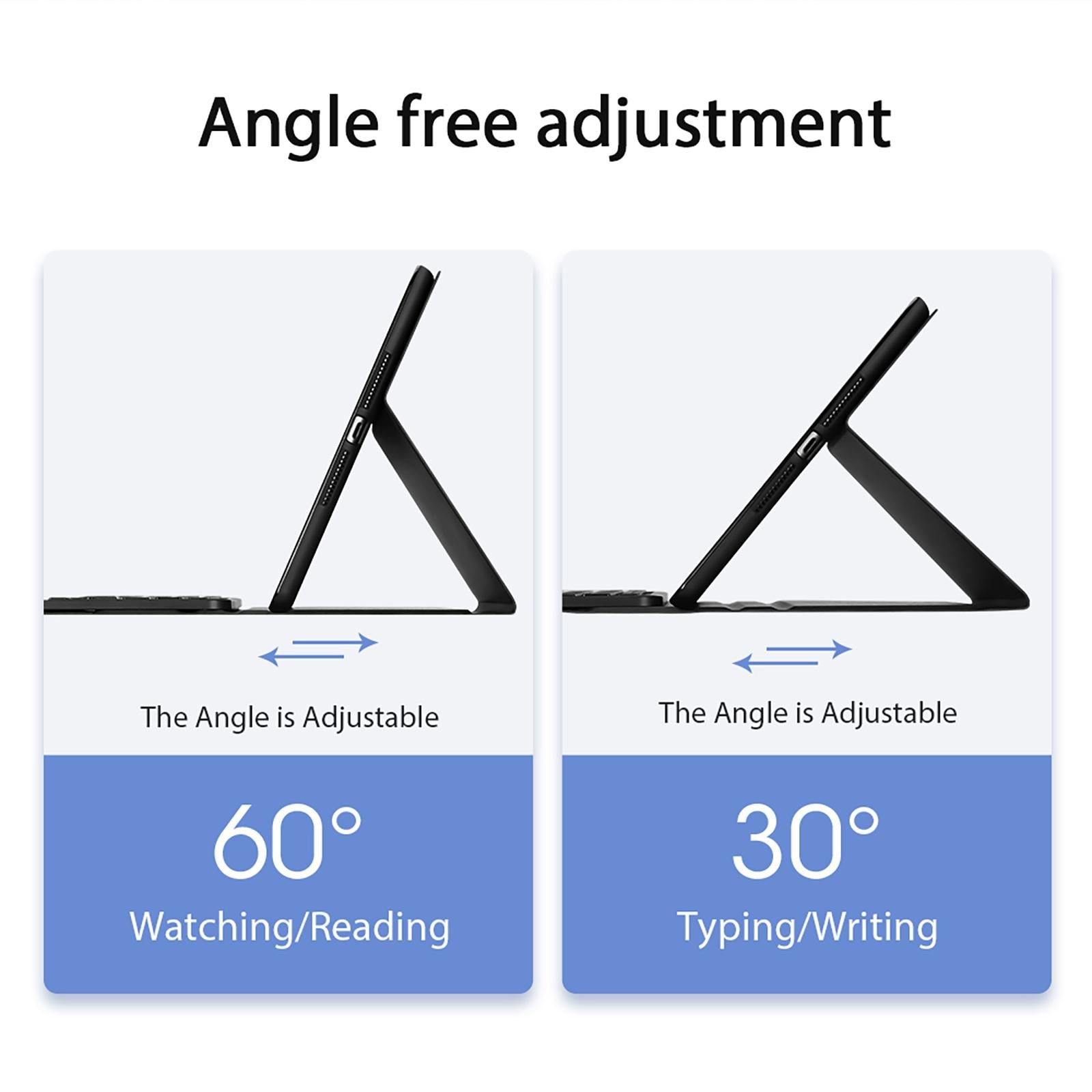 This is a protective leather case with a built-in Bluetooth keyboard designed for the iPad 10.9-inch model. The keyboard and case can be separated, providing flexibility and convenience. It features a Bluetooth chip for a fast, stable, and low power connection, along with precise cutouts for easy access to all buttons and ports. The case supports touch, smart sleep, and stand functions, making it easy to use and carry. It is easy to insert and remove from the tablet, which is not included.