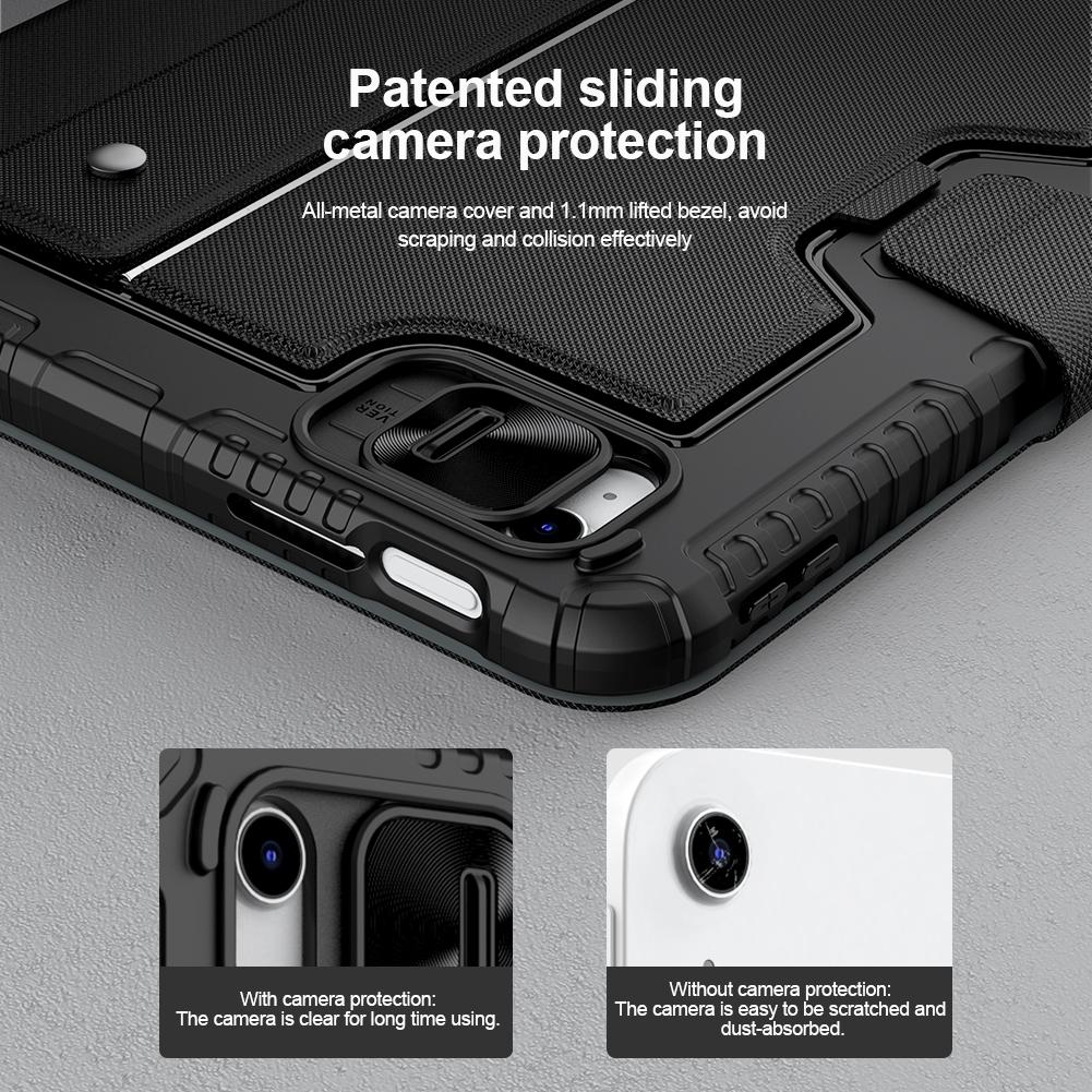 This multi-function keyboard case is designed for the 2022 iPad 10.9 inch, offering an adjustable stand, removable keyboard, and trackpad for versatile use. It provides a convenient setup for typing, viewing, reading, and sketching, with flexible operation to enhance your experience. The case features an all-metal camera cover and a 1.1mm lifted bezel to protect against scratches and collisions.