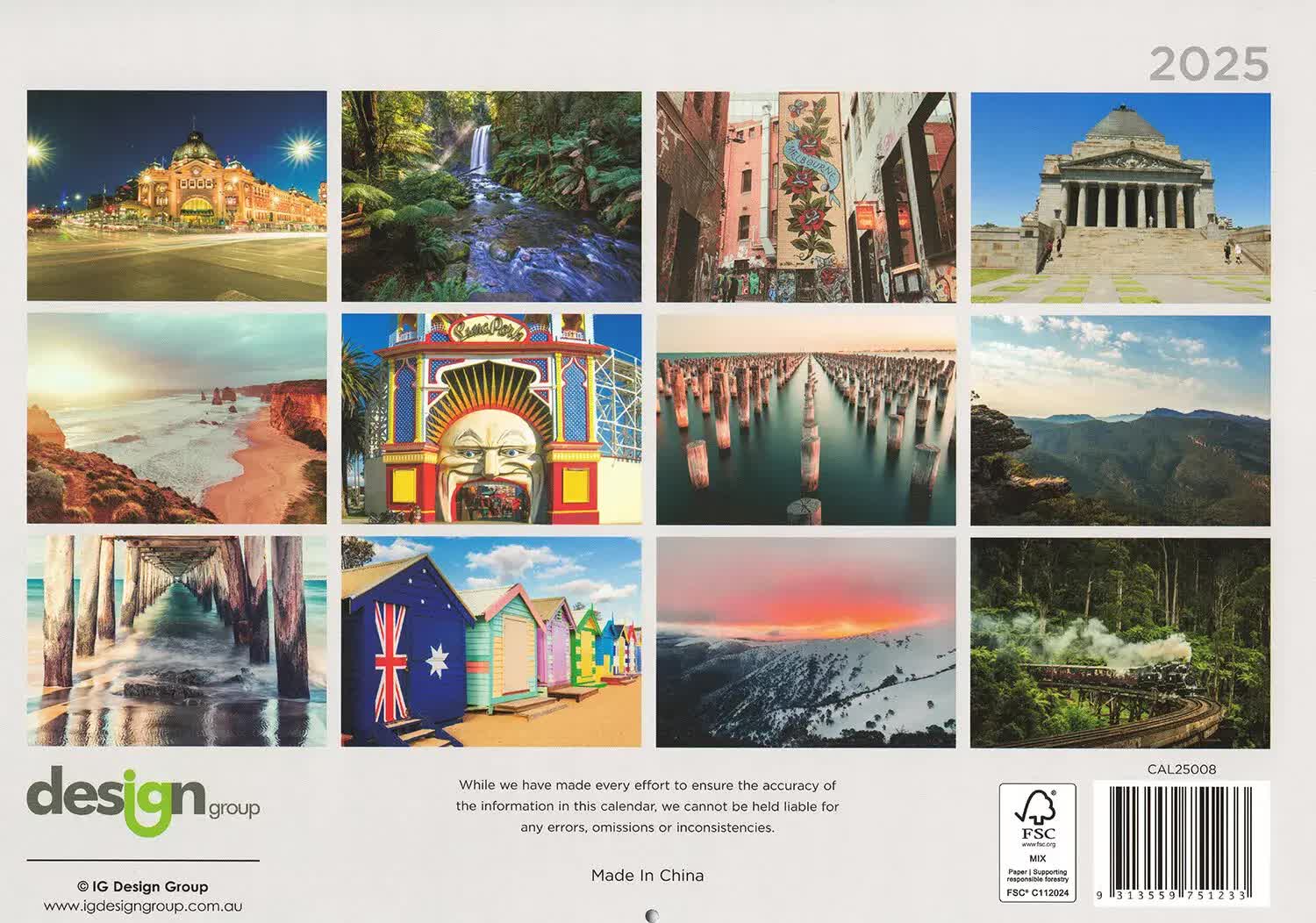 This 2025 16-month wall calendar features vibrant photographs of iconic locations in Victoria, Australia. It offers a comprehensive planning tool with ample space for notes and important dates, making it suitable for both personal and professional use. The calendar includes public holidays and key dates relevant to Australia and New Zealand, helping you stay organized throughout the year.