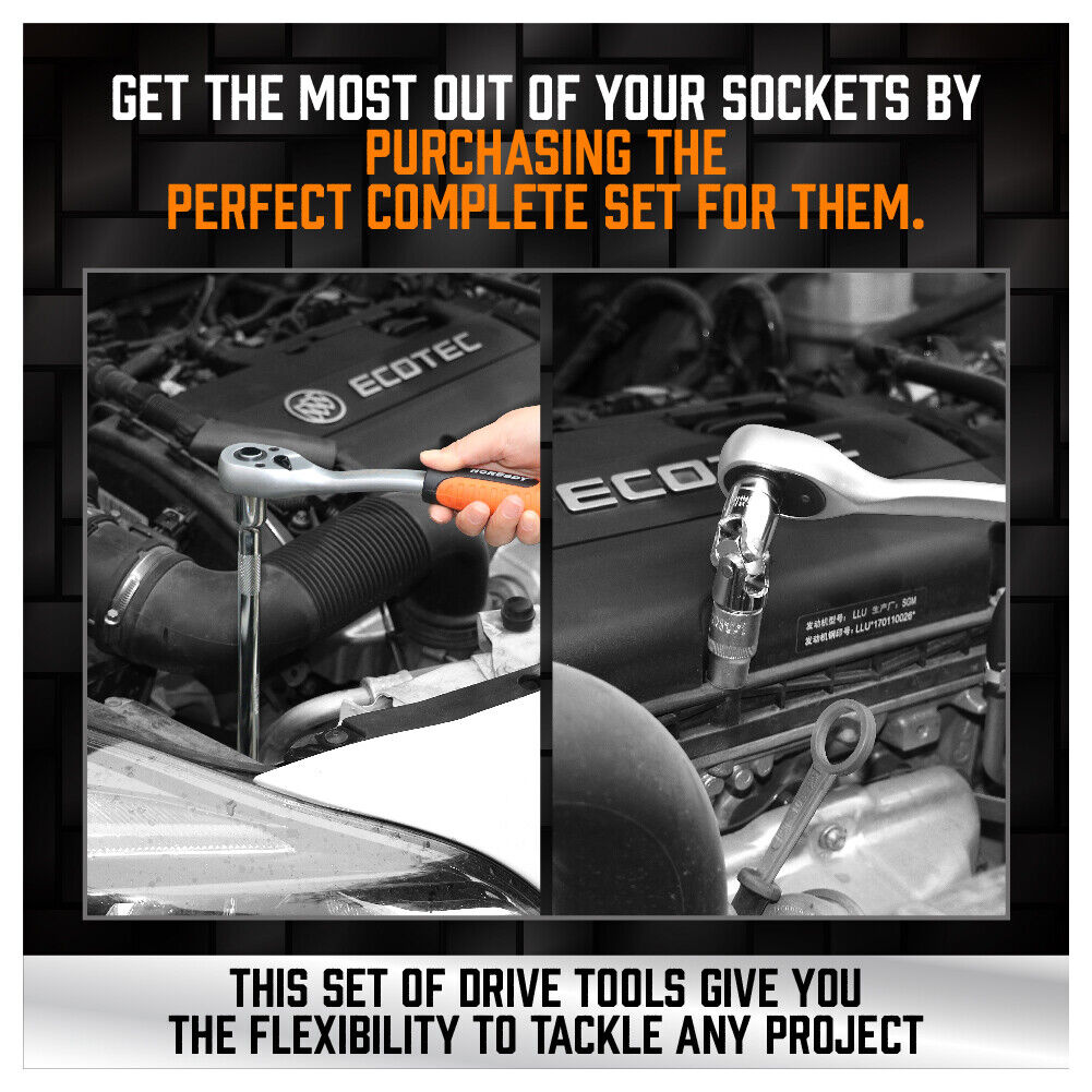 - Suitable for 1/4, 3/8, and 1/2-inch sockets