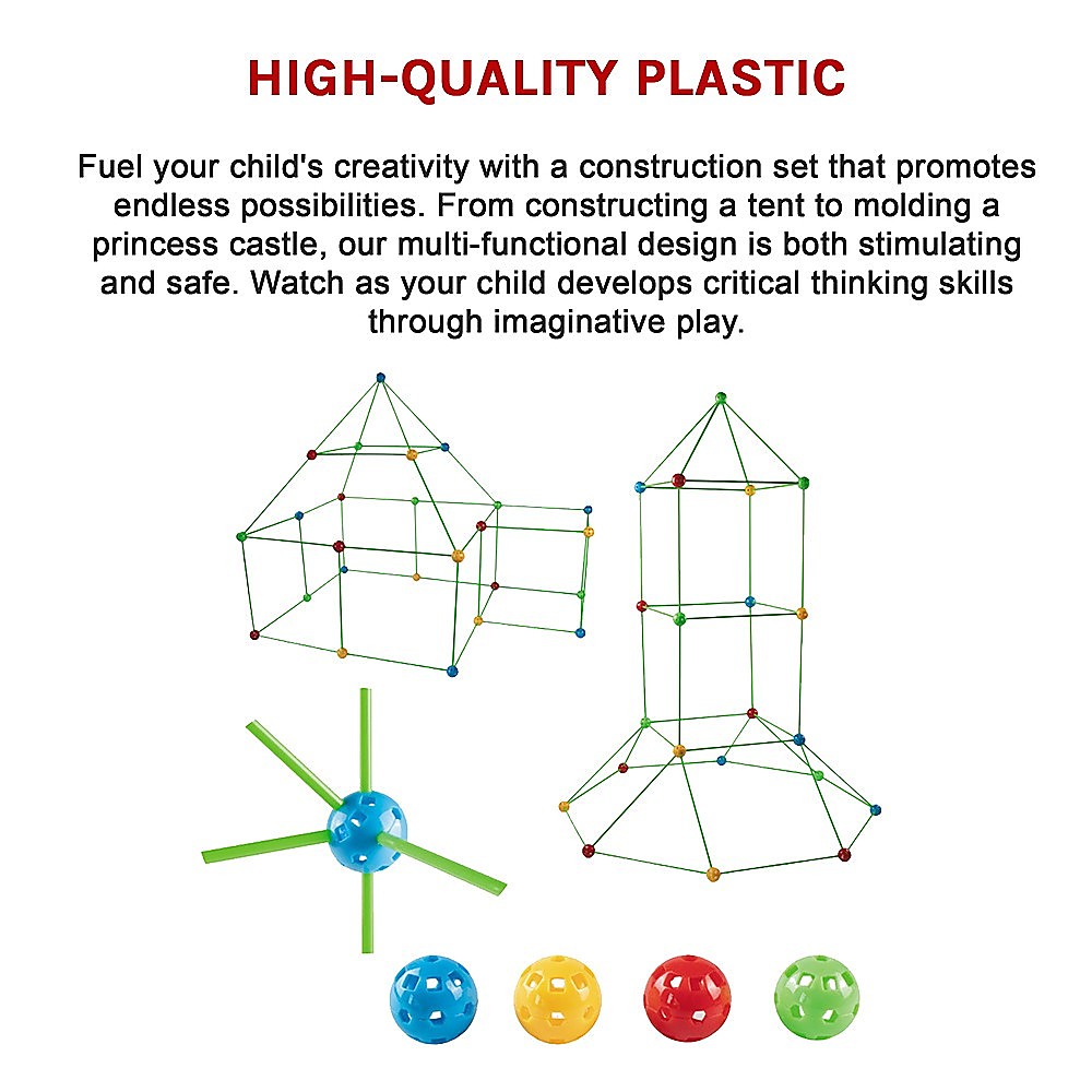 Encourage your child’s creativity and imaginative play with this versatile construction set. Designed for endless building possibilities, it allows children to create structures such as forts, castles, tents, and even space rockets, fostering critical thinking and problem-solving skills.