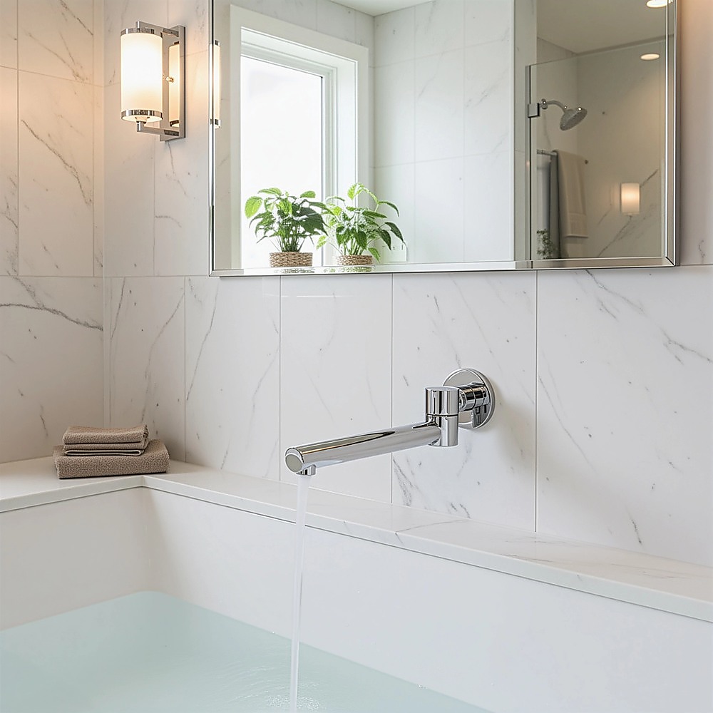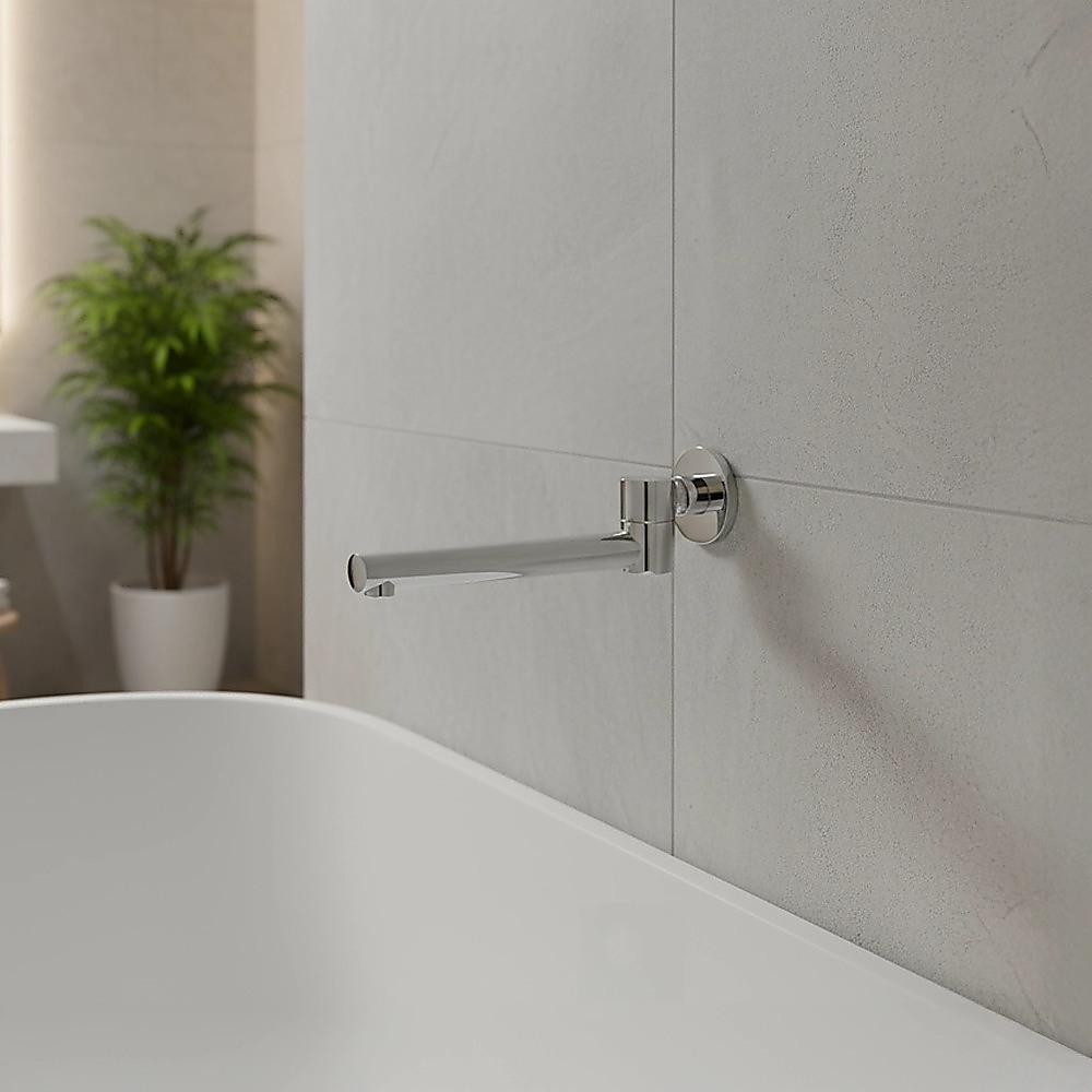 This bath safety spout is designed to enhance both the safety and style of your bathroom. It features a sleek, modern design with a durable chrome finish, providing a sophisticated look while ensuring long-lasting shine. The spout includes a swivel function for added safety and convenience, making it suitable for various bathroom setups.