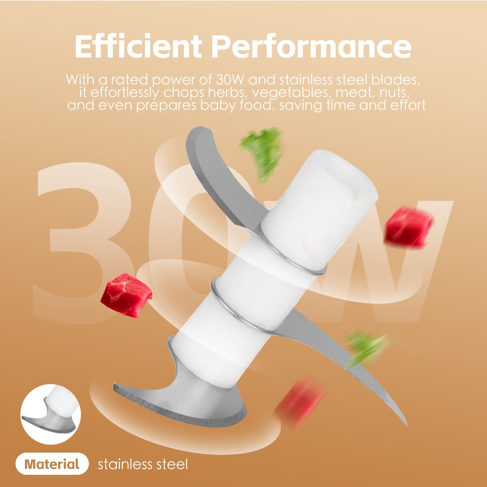 This 250ml cordless mini food chopper offers a convenient and efficient solution for food preparation. Its compact design and simple operation make it ideal for quick chopping tasks in the kitchen.