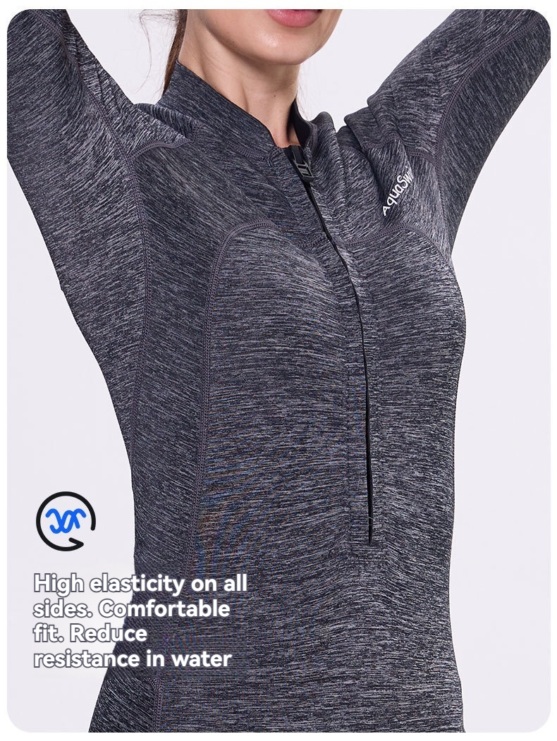 This product is a 2-piece jellyfish suit designed for diving and water sports. It features a super elastic, skin-friendly material that provides both comfort and flexibility. The suit combines practicality with fashionable design, making it suitable for various water activities and casual outings.