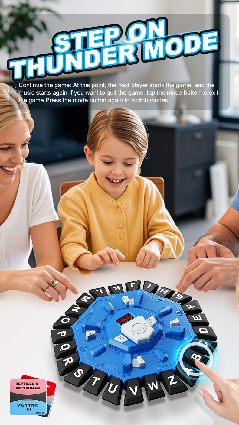 This electronic tabletop game offers an exciting and fast-paced word challenge suitable for family gatherings, parties, and educational activities. It features multiple game modes, extensive content, and engaging gameplay that tests quick thinking and vocabulary skills.