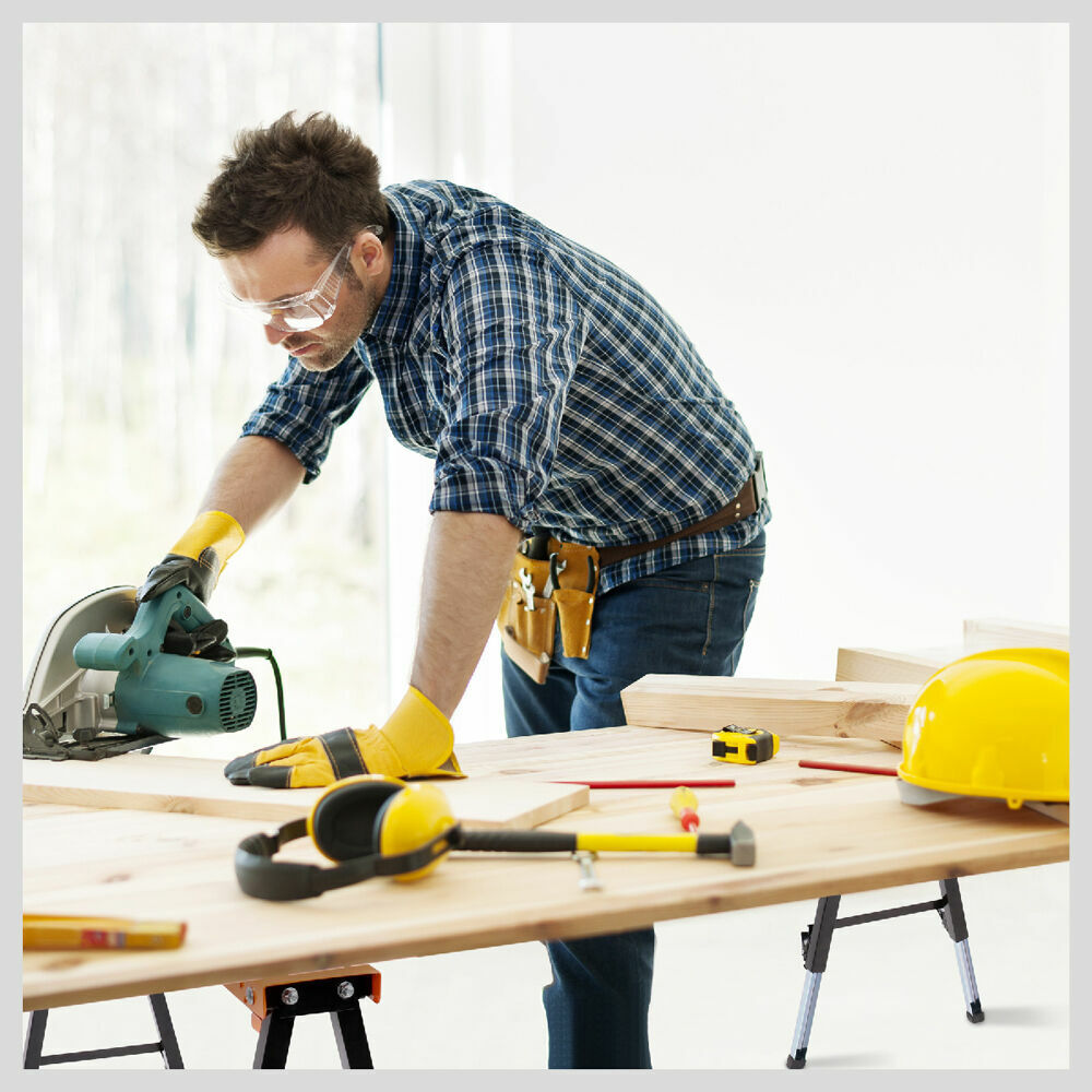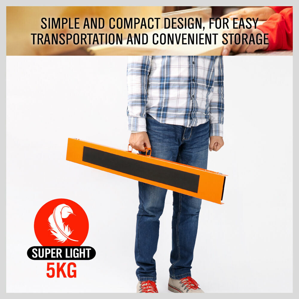 This set includes two metal sawhorses designed for stability and portability. They feature a non-slip surface to enhance support and safety during use. The lightweight construction and ergonomic handles make setup and storage easy, while the crossing braces provide additional stability for heavy loads.
