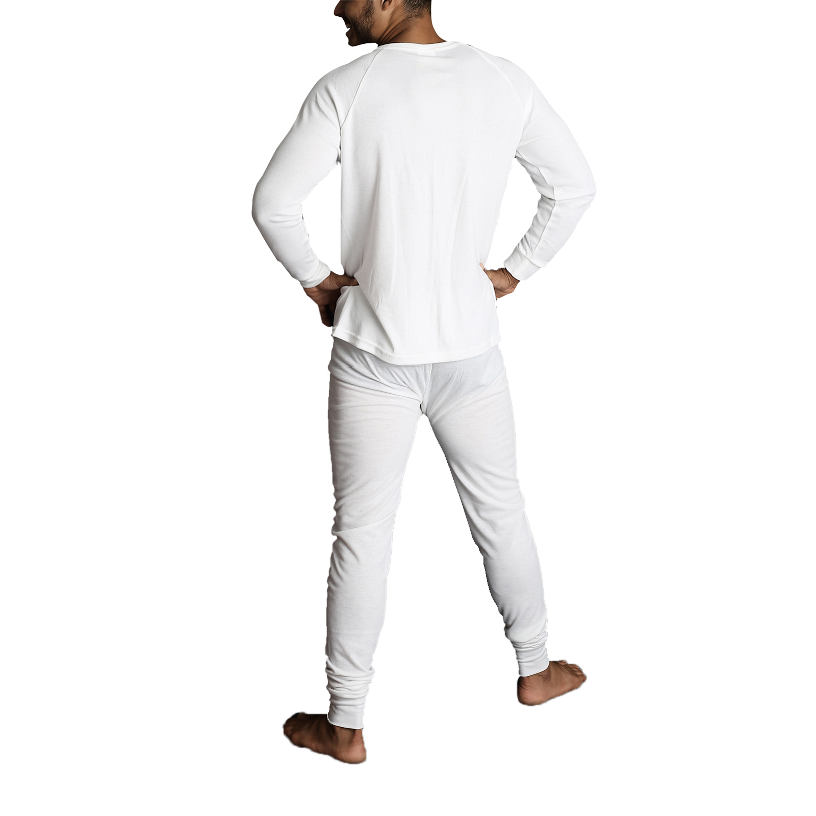 2pcs Set Mens Merino Wool Blend Long Sleeve Thermal Top & Long Johns Pants Underwear – Beige – M