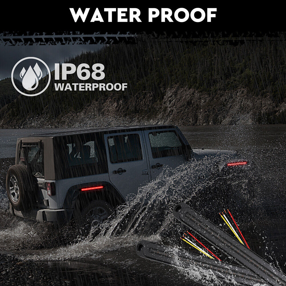 This product features a 3-in-1 LED tail light that combines brake, turn signal, and daytime running light functions. It is designed for use on heavy trucks, semi-trailers, cargo trailers, work vehicles, RVs, and other overland vehicles with varying widths.