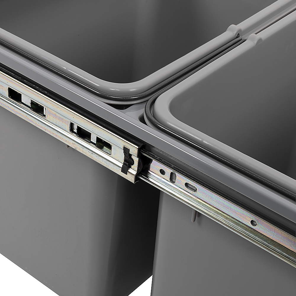 This dual pull-out trash bin is designed for efficient waste management in the kitchen. It fits conveniently under the sink, keeping your rubbish out of sight and organized. Made from durable plastic and steel, it offers a practical solution for daily waste disposal with a large capacity to reduce the need for frequent emptying.