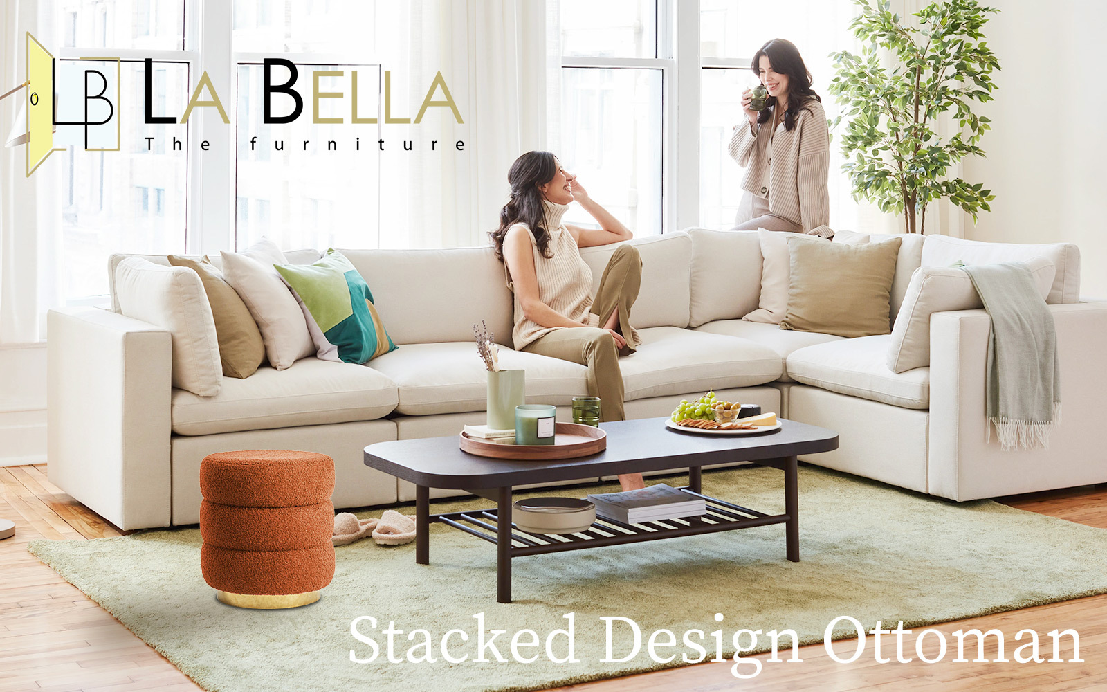 This set features two round stacked ottoman stools designed with a modern and stylish appearance. The cushions are upholstered with soft teddy fleece fabric, providing a cozy and inviting feel. The stools are supported by a chic gold base, adding an elegant touch to any space.