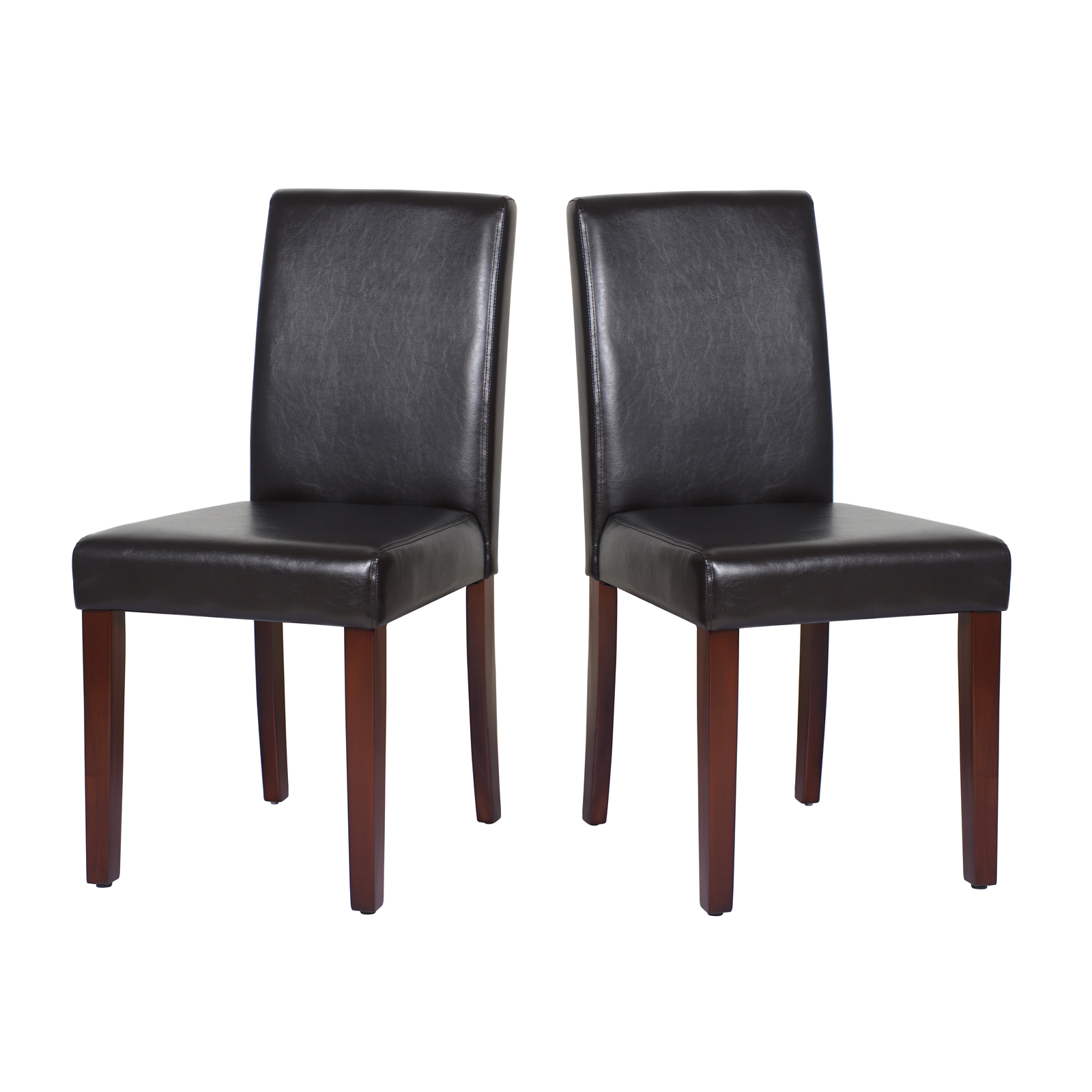 2x Wooden Frame Brown Leatherette Dining Chairs with Solid Pine Legs