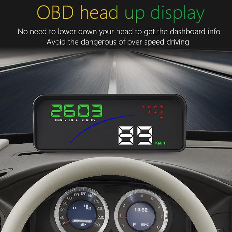 This 3.6 Inch Car OBD2 Smart Digital Meter features a multi-colour display for clear and easy reading. It provides real-time information including speed, RPM, water temperature, voltage, instantaneous and average fuel consumption, driving distance, and various alerts such as shift reminders, fatigue driving warnings, low voltage, high water temperature, over speed, and engine failure. The device can switch between kilometers and miles and offers both auto and manual control modes for user convenience. It is designed to enhance driving safety and vehicle monitoring.