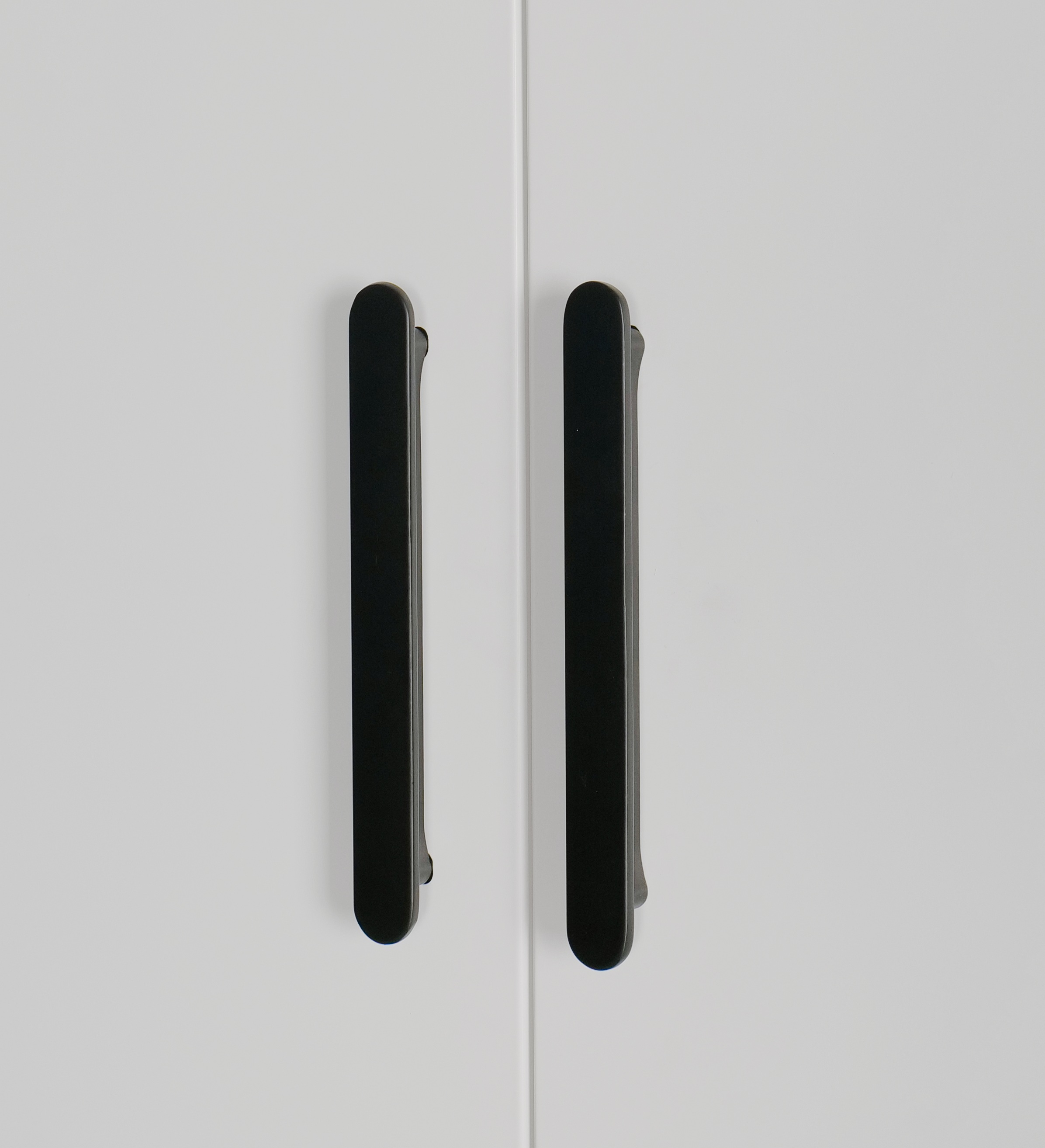 This wardrobe combines modern style with smart storage solutions, making it an ideal addition to contemporary bedrooms. It features a sleek high-gloss finish with black handles, offering a clean and sophisticated look. Designed for practicality, it provides ample space for organizing clothes, shoes, and accessories while maintaining a compact footprint.