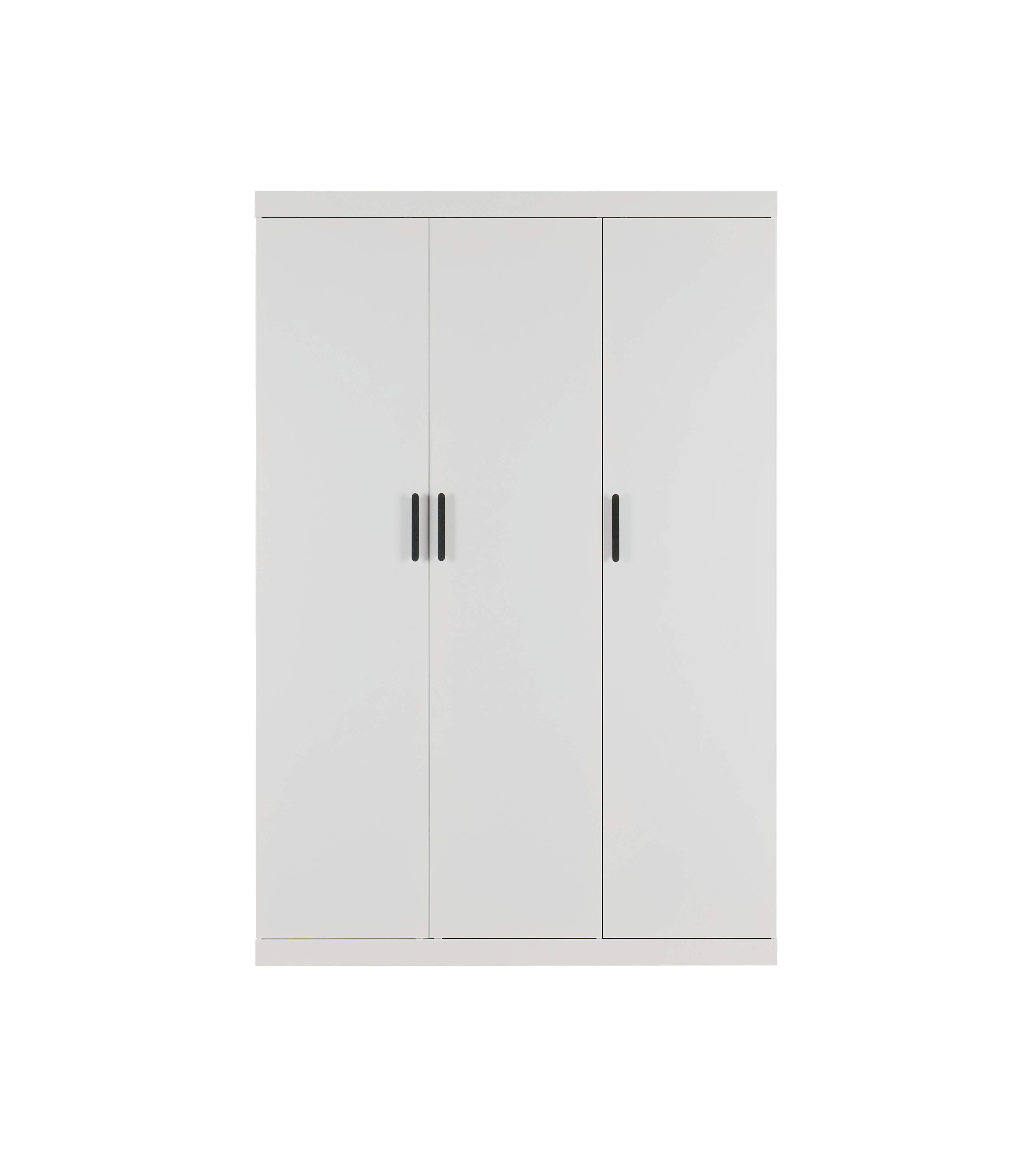 3 Door White Gloss Wardrobe – Black Handles, Hanging Rail & Shelves