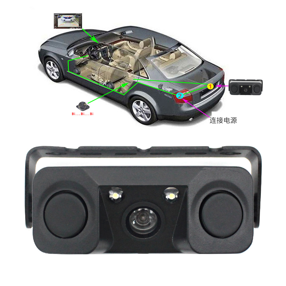 - Integrates a rearview camera, parking sensors, and an audible buzzer into a single unit