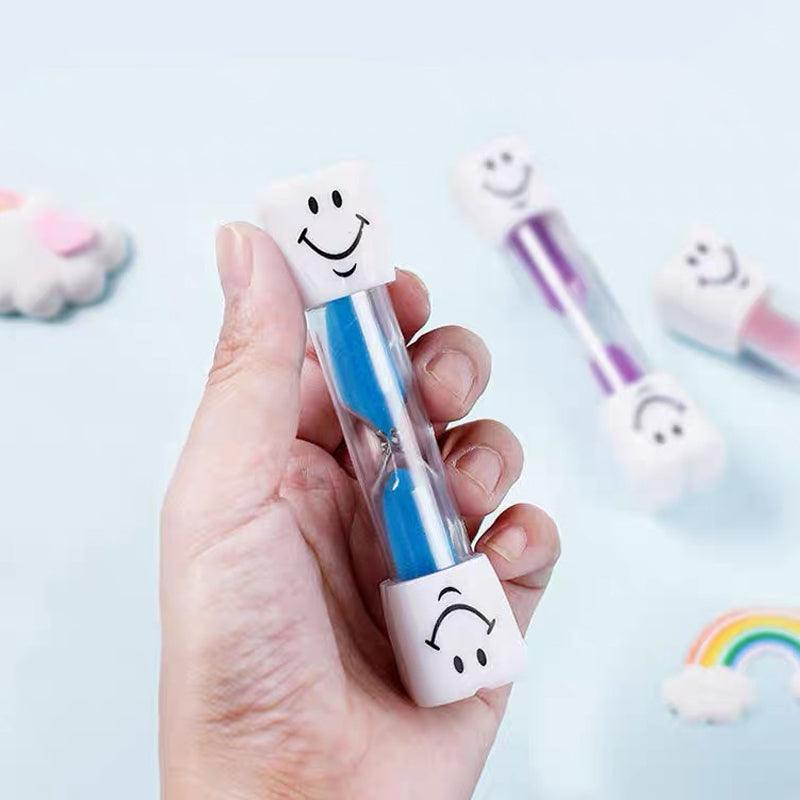 This 3-minute hourglass sand timer features a smiley face design, making it a fun and effective tool for encouraging children to brush their teeth thoroughly. It is suitable for use in the bathroom or kitchen, helping to establish good habits from an early age and supporting overall dental hygiene.