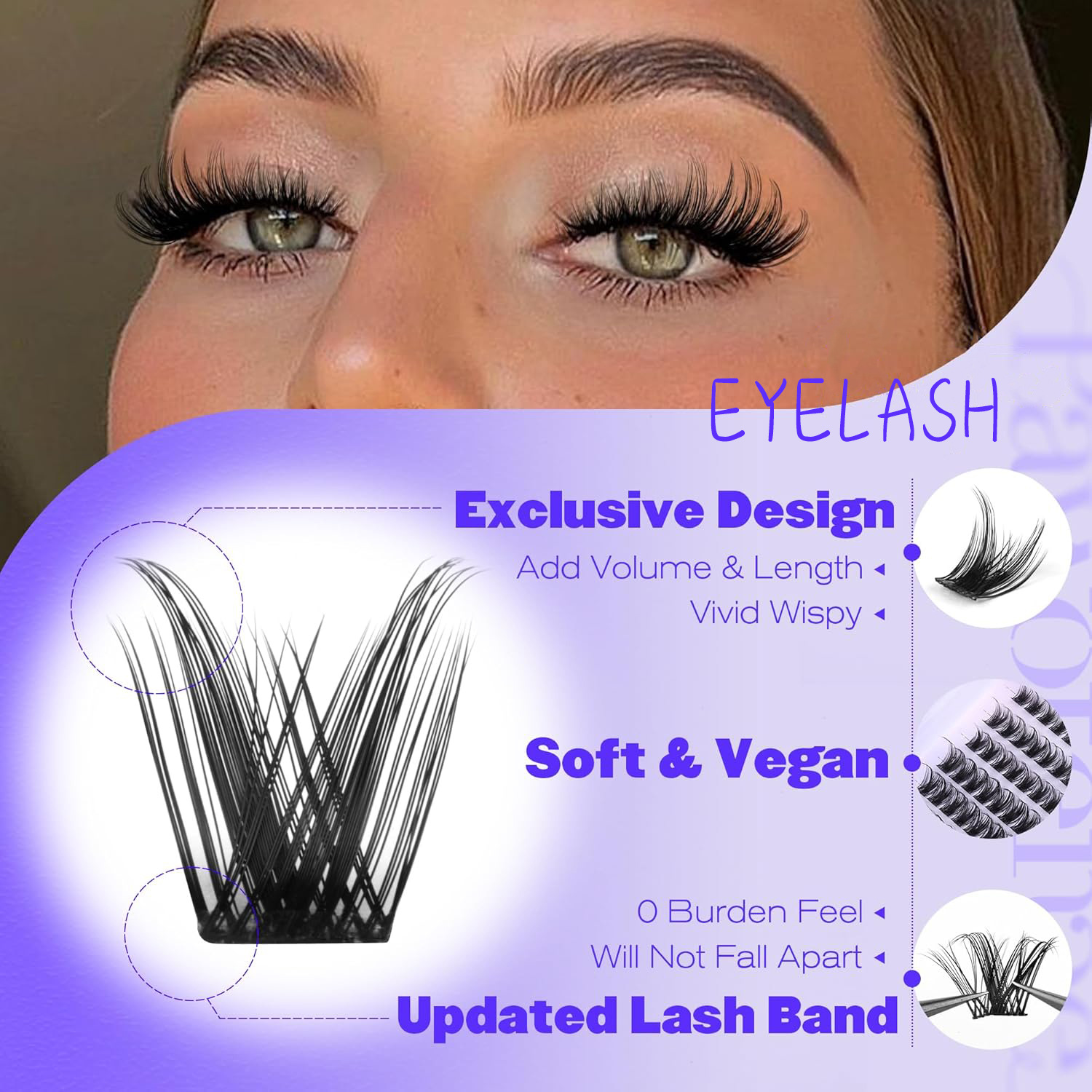 - Features: Includes three trays of mixed-length lash clusters, handmade with consistent patterns, made from soft vegan fibers, and equipped with an updated, durable lash band. Suitable for DIY self-application and customization of lash styles.