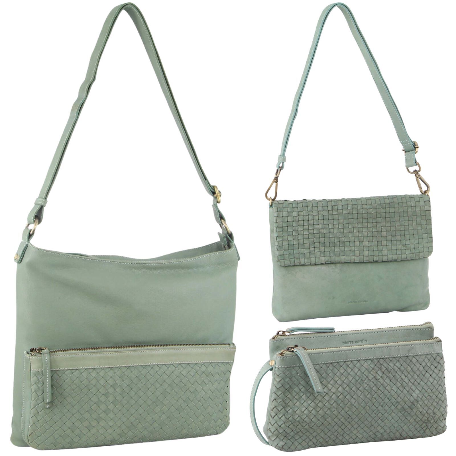 3-Piece Set Pierre Cardin Womens Woven Cross-Body Bag – Mint Green