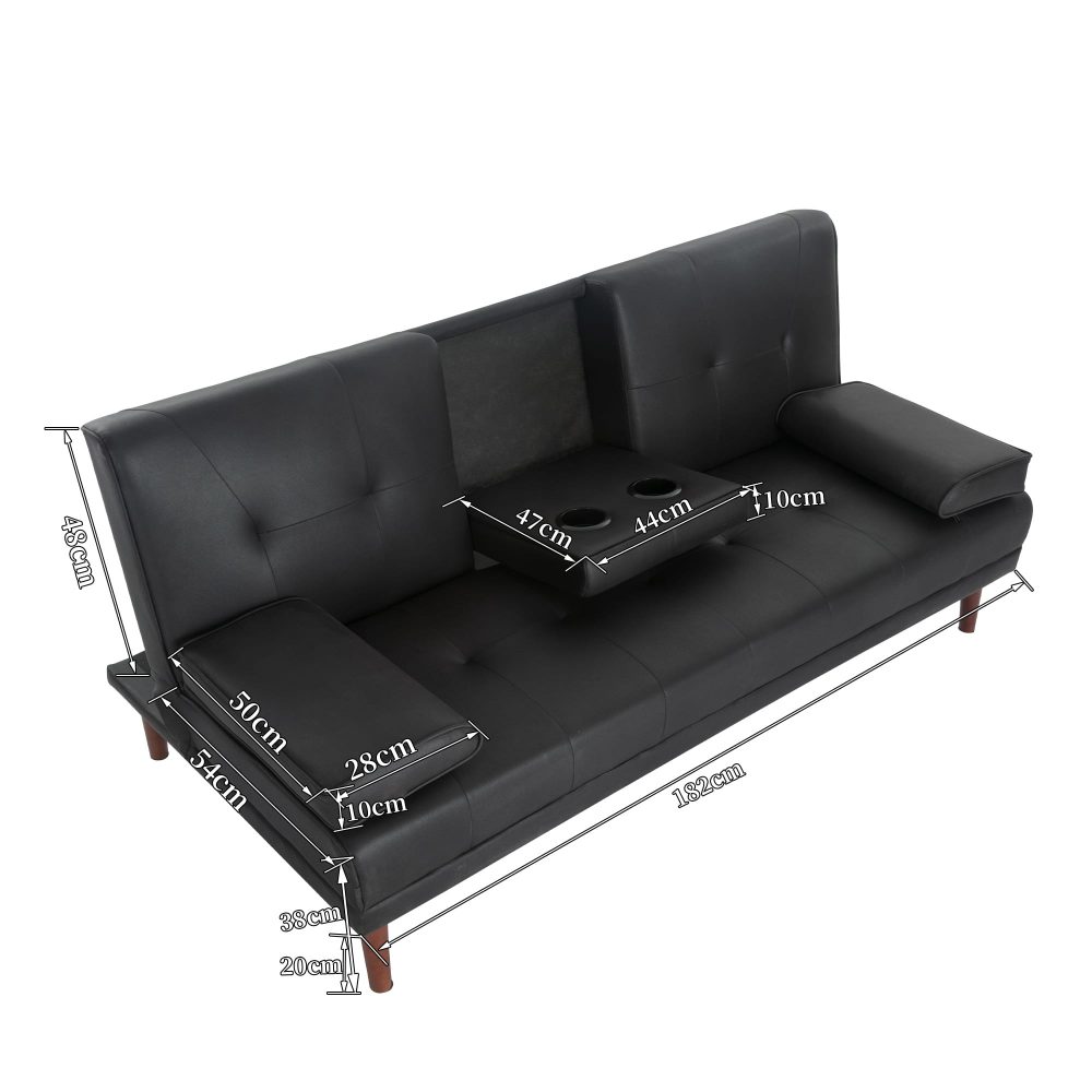 3 Seater Adjustable Sofa Bed With Cup Holder Black