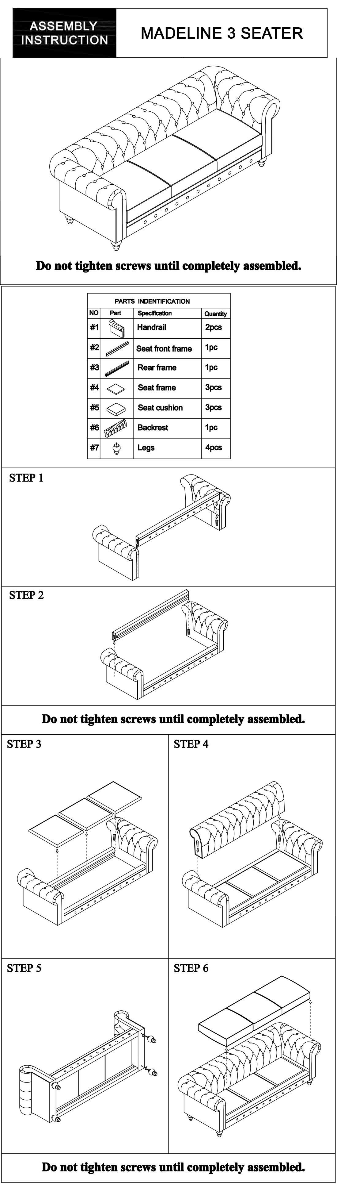 This ultra-soft and sleek sofa features finely decorated cushion covers with deep quilting and PU leather-covered buttons. The high-density foam inside ensures superior comfort.