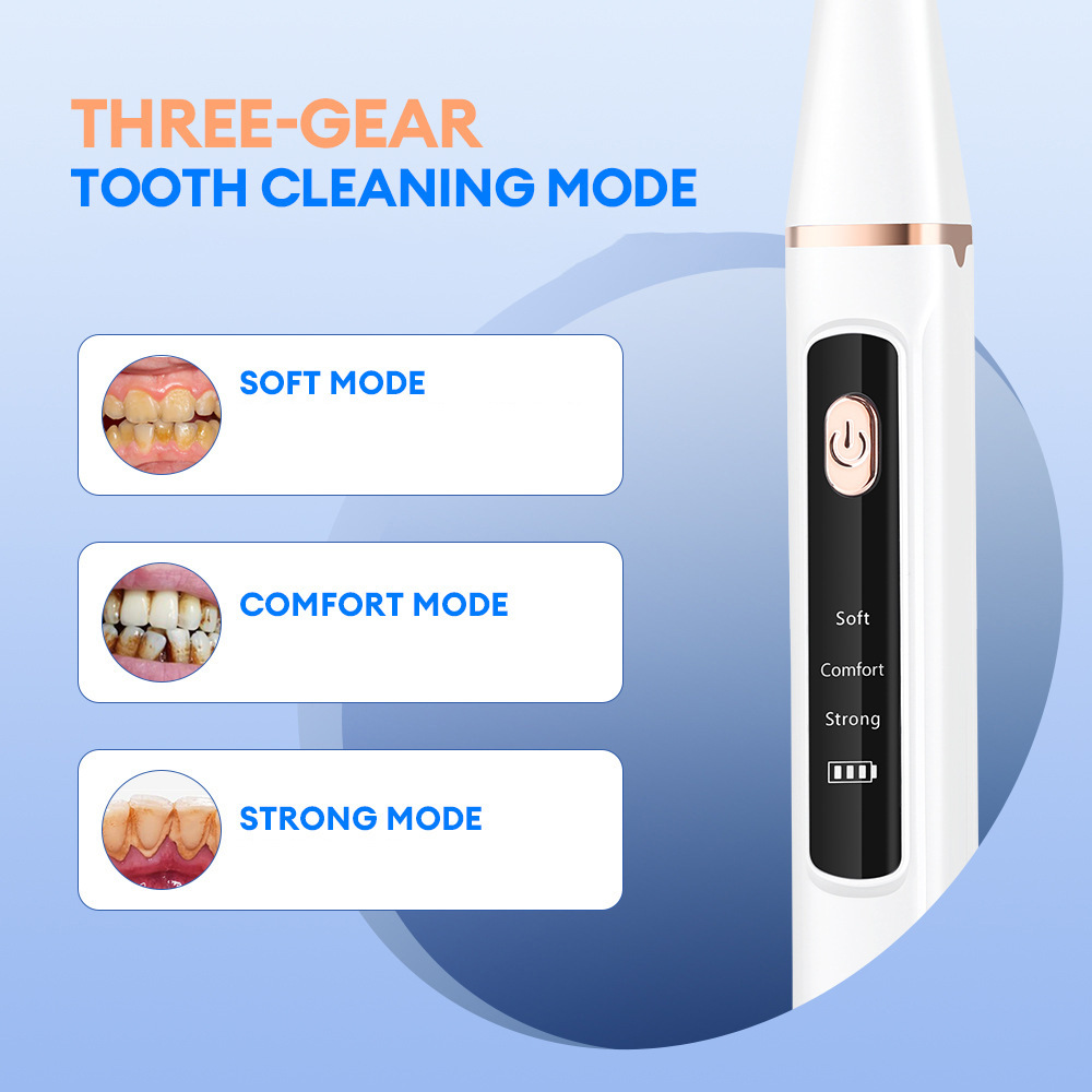 This ultrasonic dental cleaner features multiple adjustable modes and advanced ultrasonic technology to provide effective and safe dental care at home. Its compact design and LED light facilitate precise cleaning, making it a convenient tool for maintaining oral hygiene.