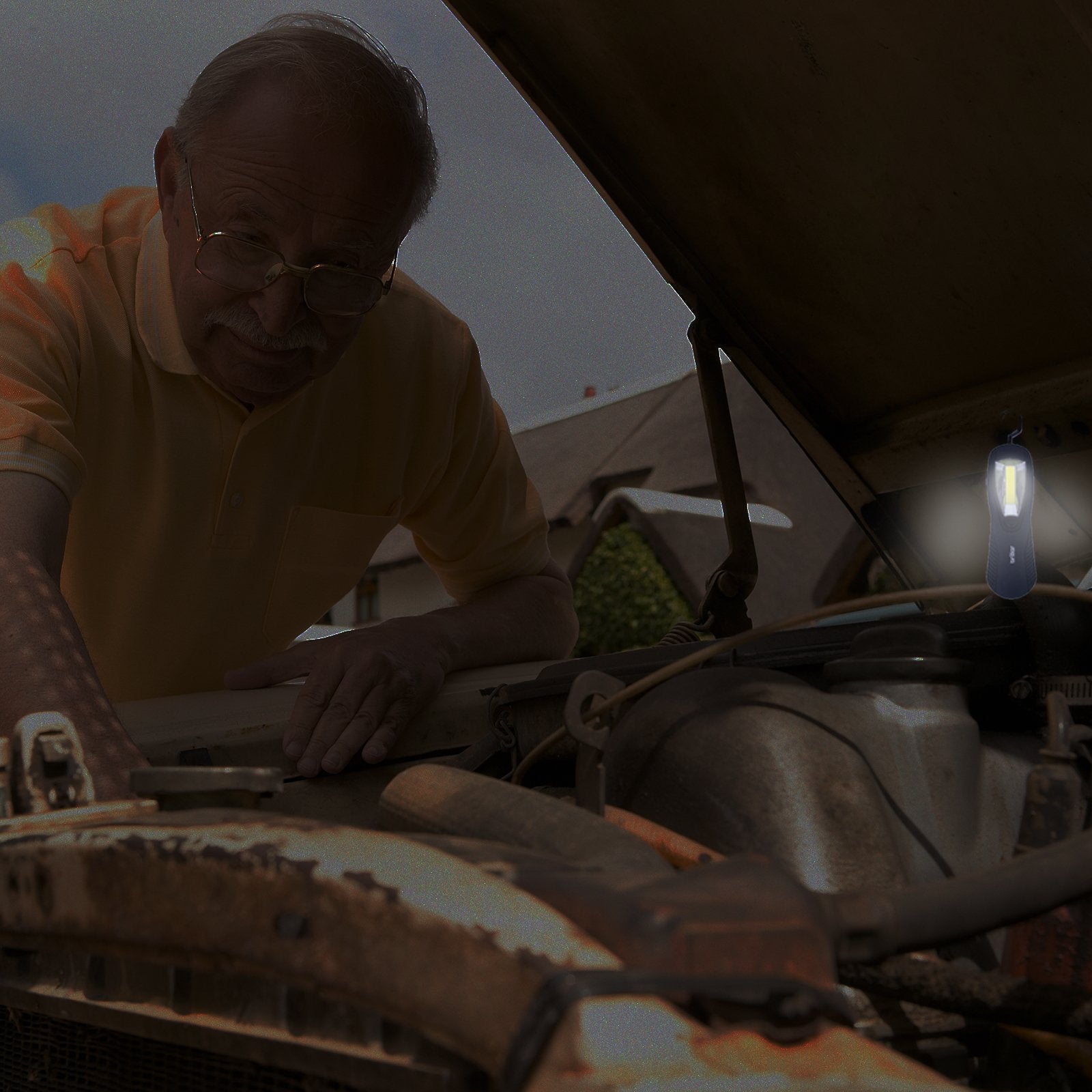 This ultra-bright work light provides high efficiency and visibility with a brightness of 300 lumens. Its compact design makes it suitable for various environments such as home, garage, or office. The light features versatile mounting options, including a foldaway swiveling hook and a magnetic mount, allowing for flexible placement in different situations.