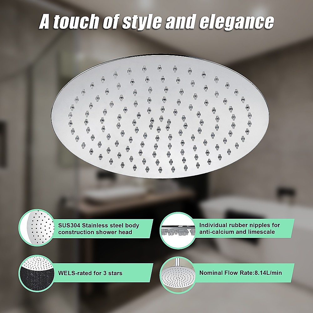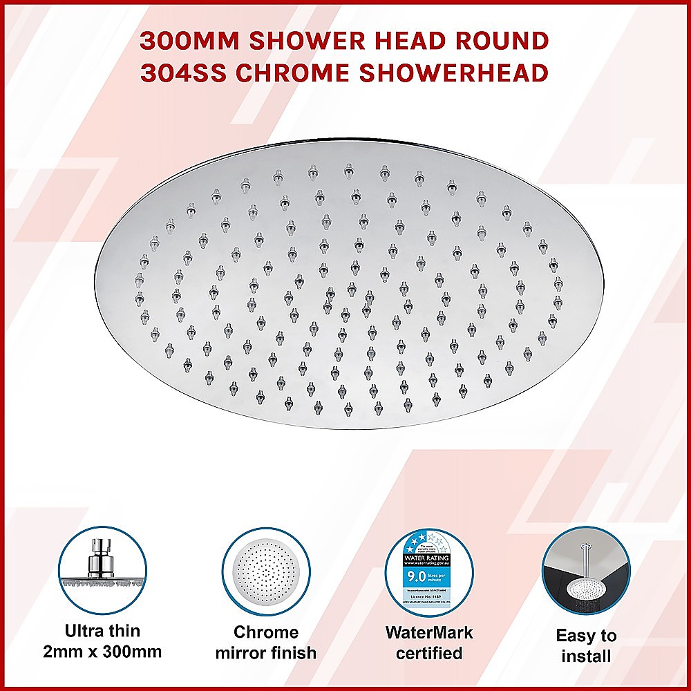 This 300mm round shower head is crafted from high-quality 304 stainless steel with a sleek chrome finish. Its minimalist design combines style and functionality, providing a luxurious rainfall experience with wide coverage. The shower head features adjustable angles and anti-calcium rubber nipples for durability and ease of maintenance, making it suitable for various bathroom styles.