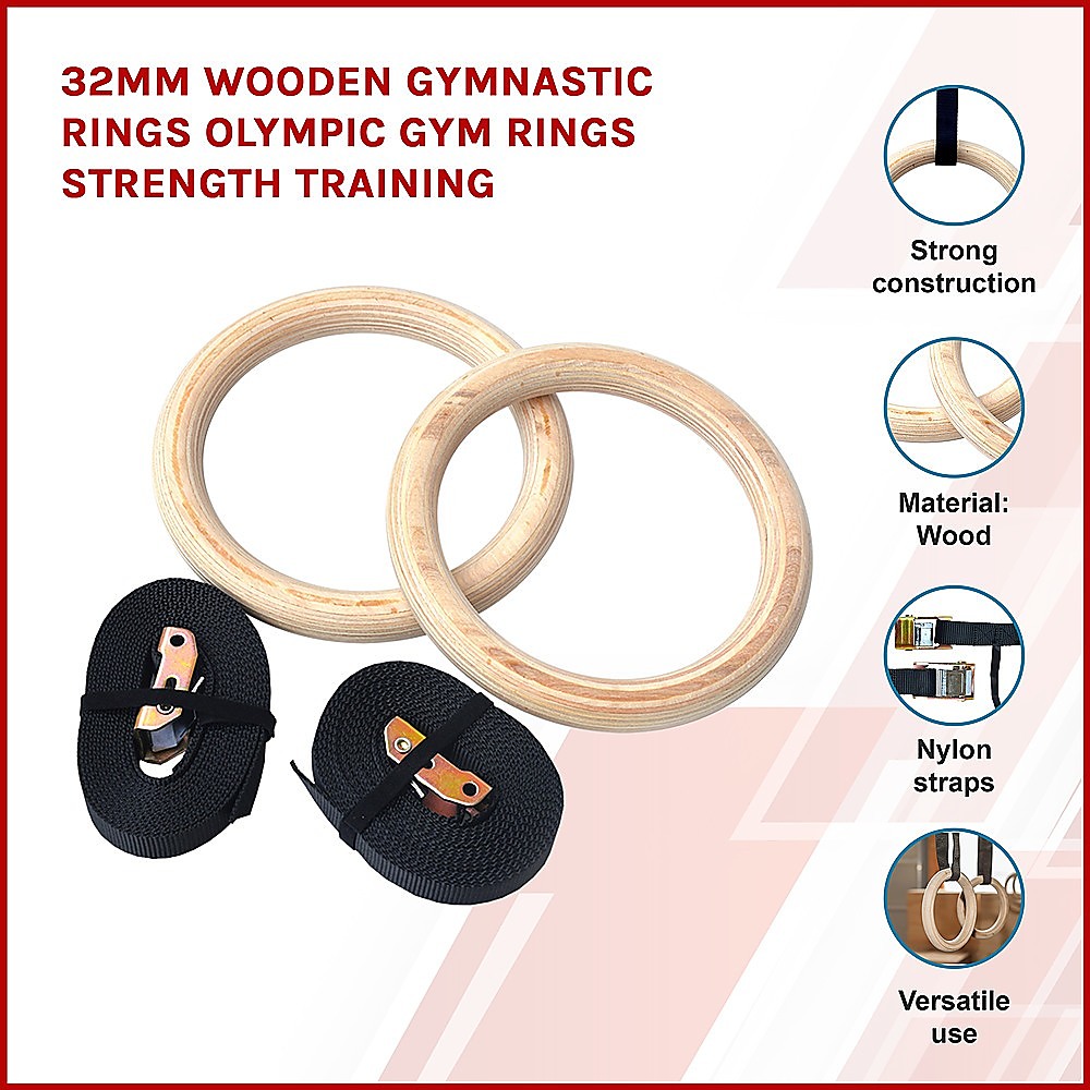 32mm Wooden Gymnastic Rings Olympic Gym Rings Strength Training