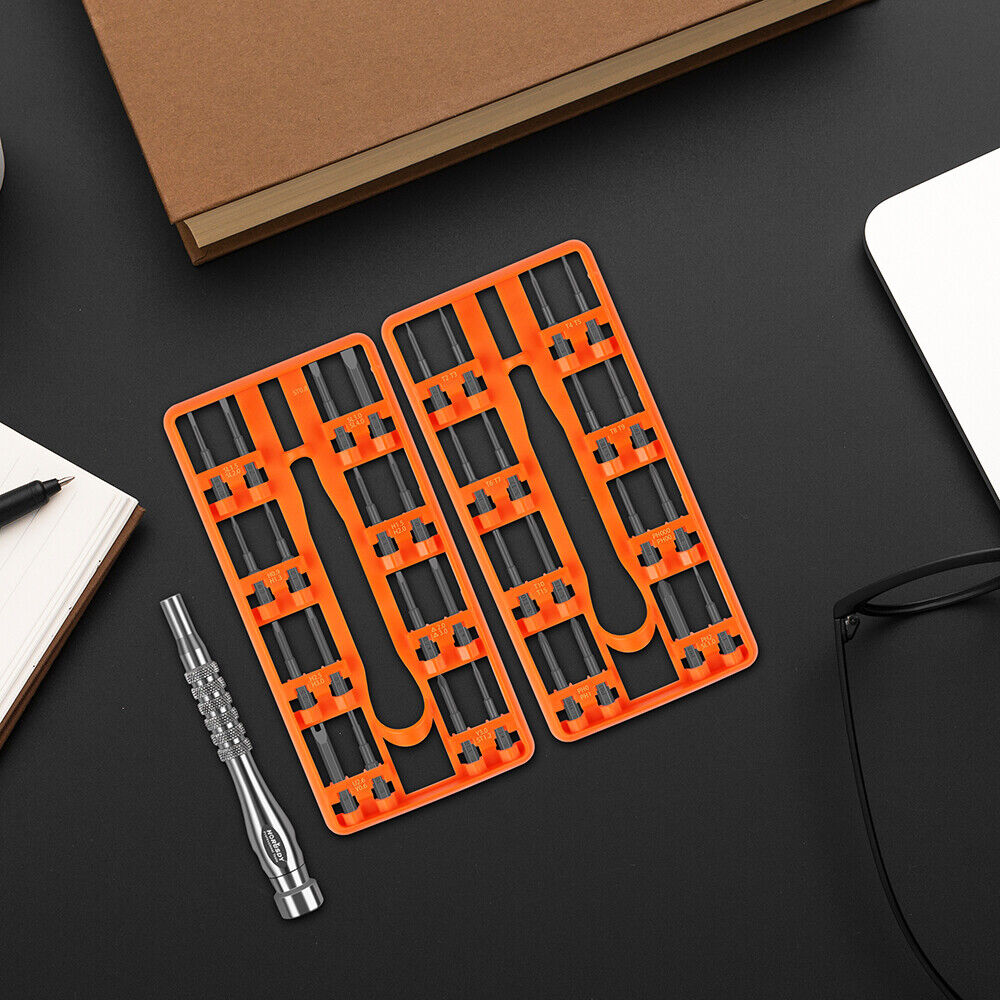 This 33-piece precision screwdriver set includes a variety of bits suitable for electronic repairs and other detailed work. The set features multiple types of bits to accommodate different screw heads, providing versatility and convenience for various tasks.