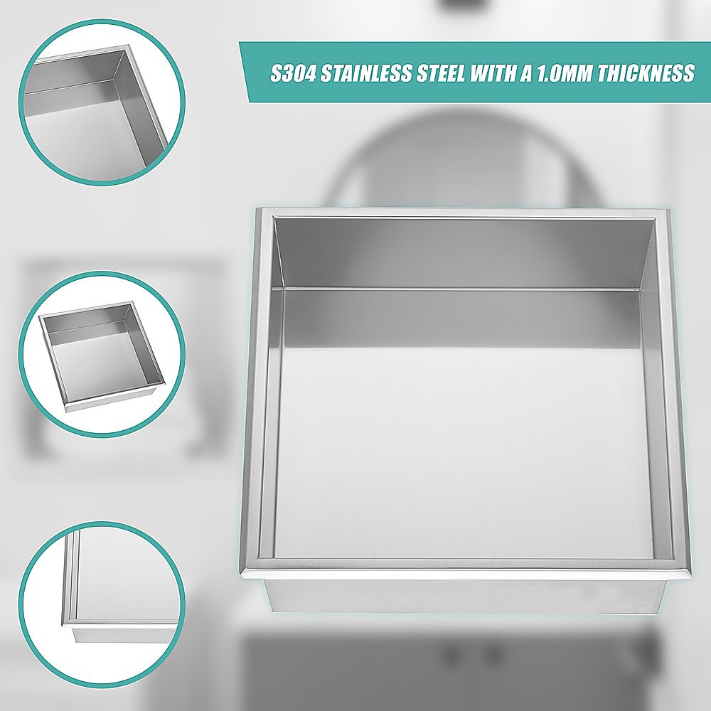 336 x 336 x 101mm Shower Niche Single Shelf Organizer No Tile Needed in Stainless Steel Finish