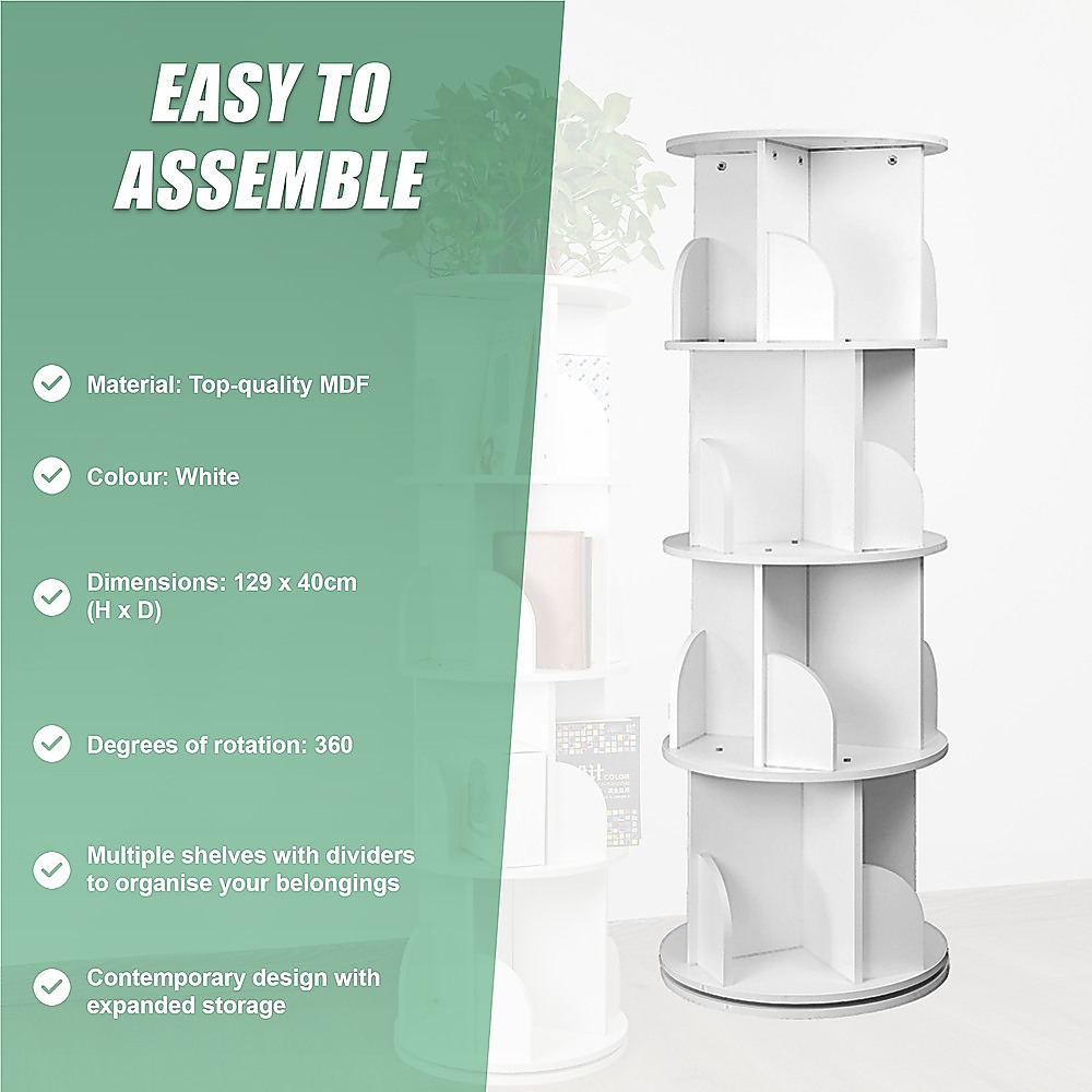 360-degree Rotating 4 Tier Display Shelf Bookcase Organiser