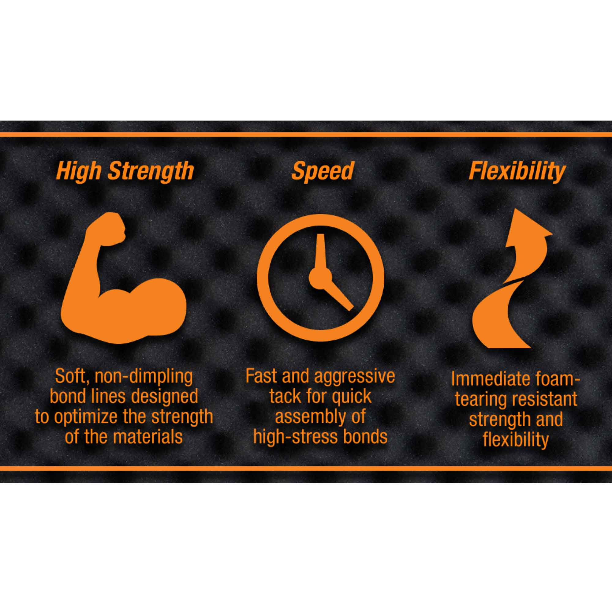 - Designed specifically for bonding foam and fabrics