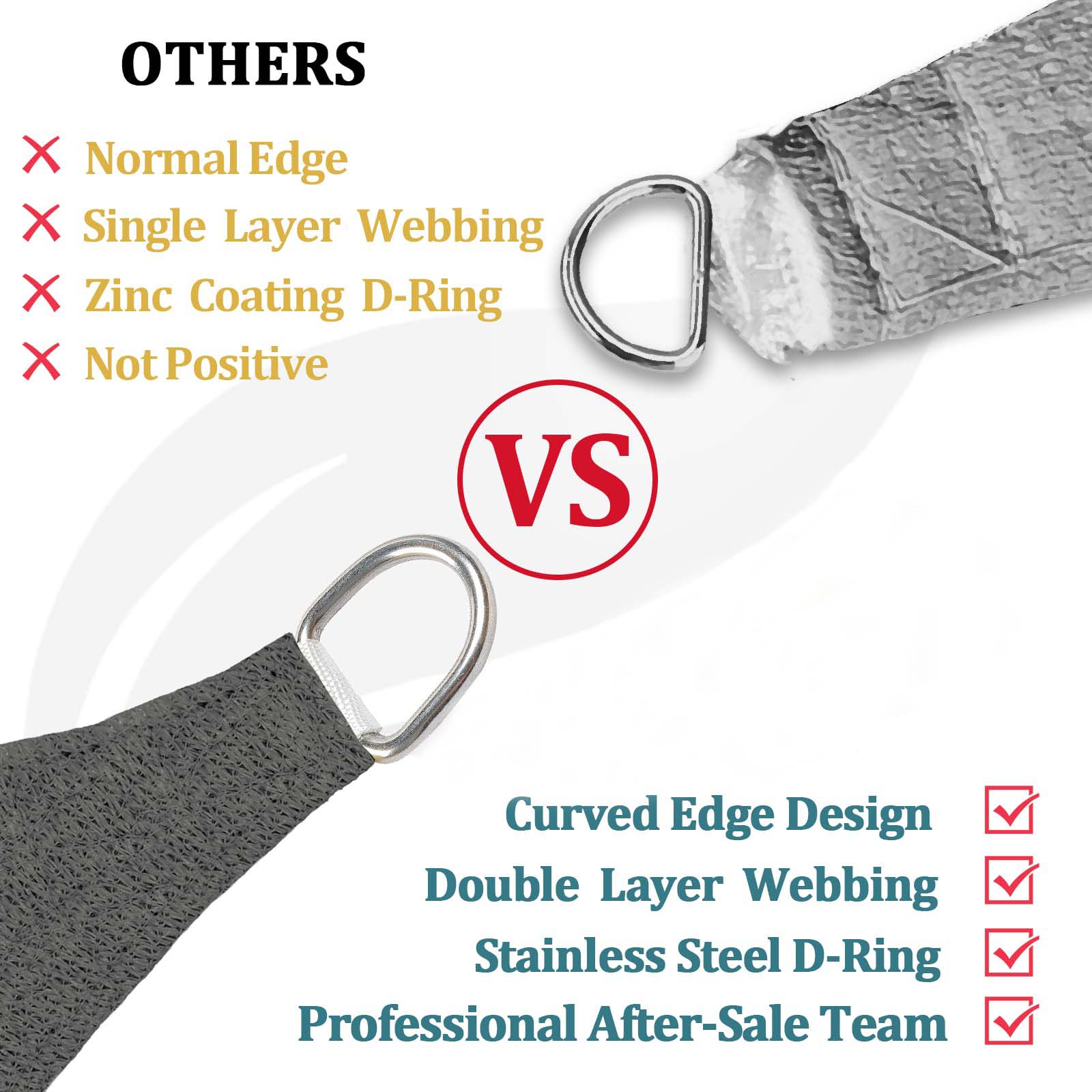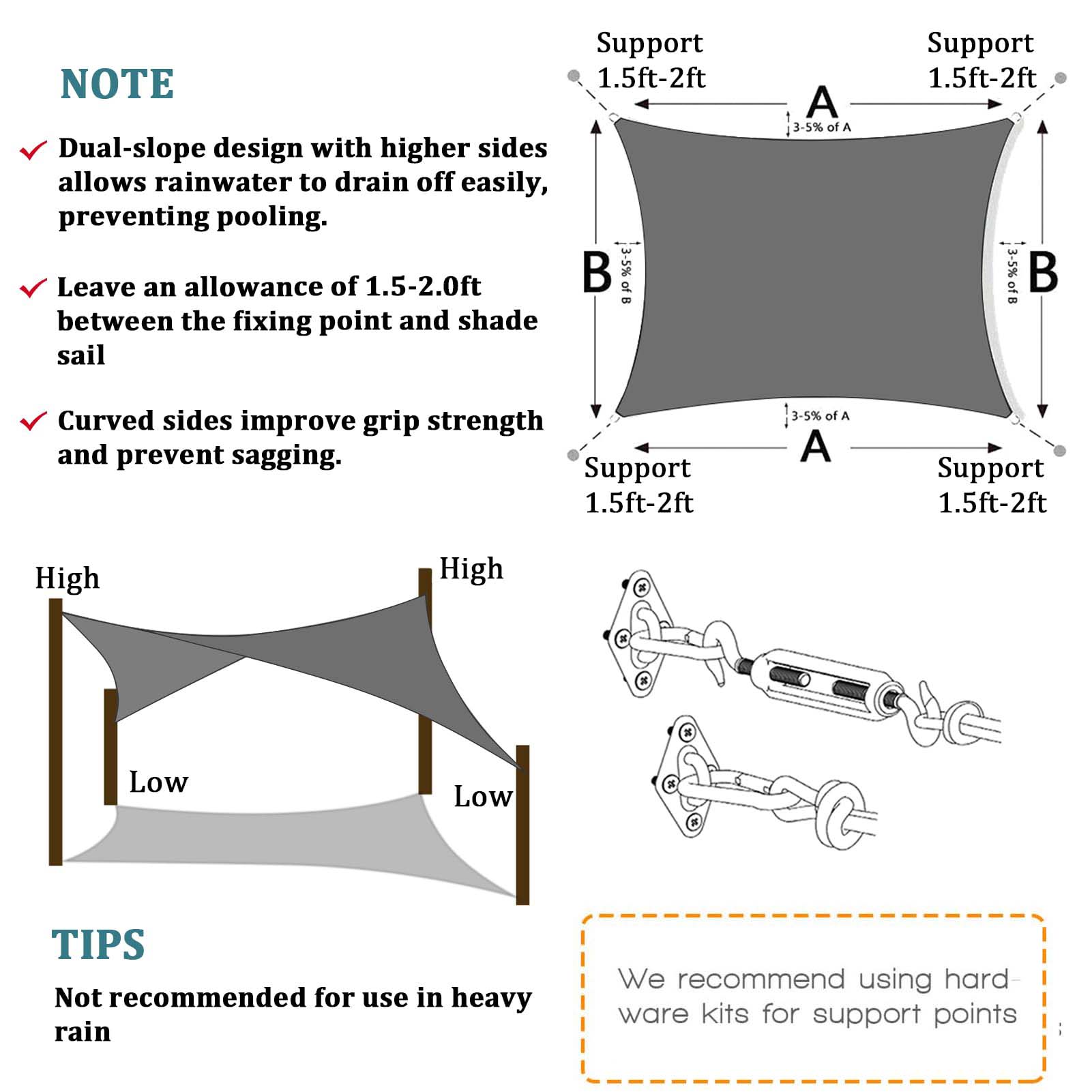 This sun shade sail provides effective protection from UV rays and sunlight, creating a comfortable shaded area for outdoor spaces. Made from high-density polyethylene fabric, it is durable, washable, water-permeable, and breathable, suitable for various weather conditions and seasons.