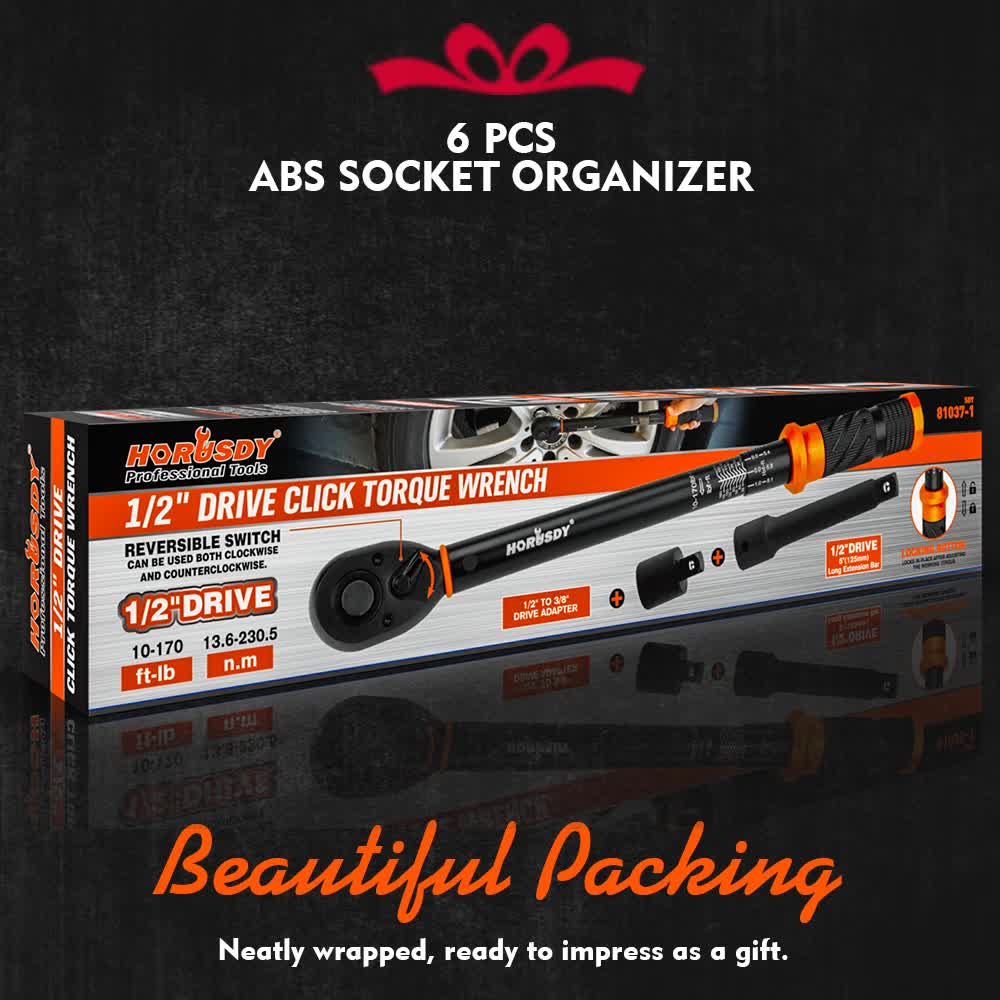 This 3-piece torque wrench set includes a 1/2″ drive click torque wrench, an adapter, and an extension bar. Crafted from high-strength materials, these tools are designed for durability and reliable performance. The ergonomic handle provides a comfortable grip, and the quick-release button along with the reversible ratchet head ensures smooth operation. Suitable for various maintenance tasks, the set is portable and comes with a sturdy case for easy storage and transport.