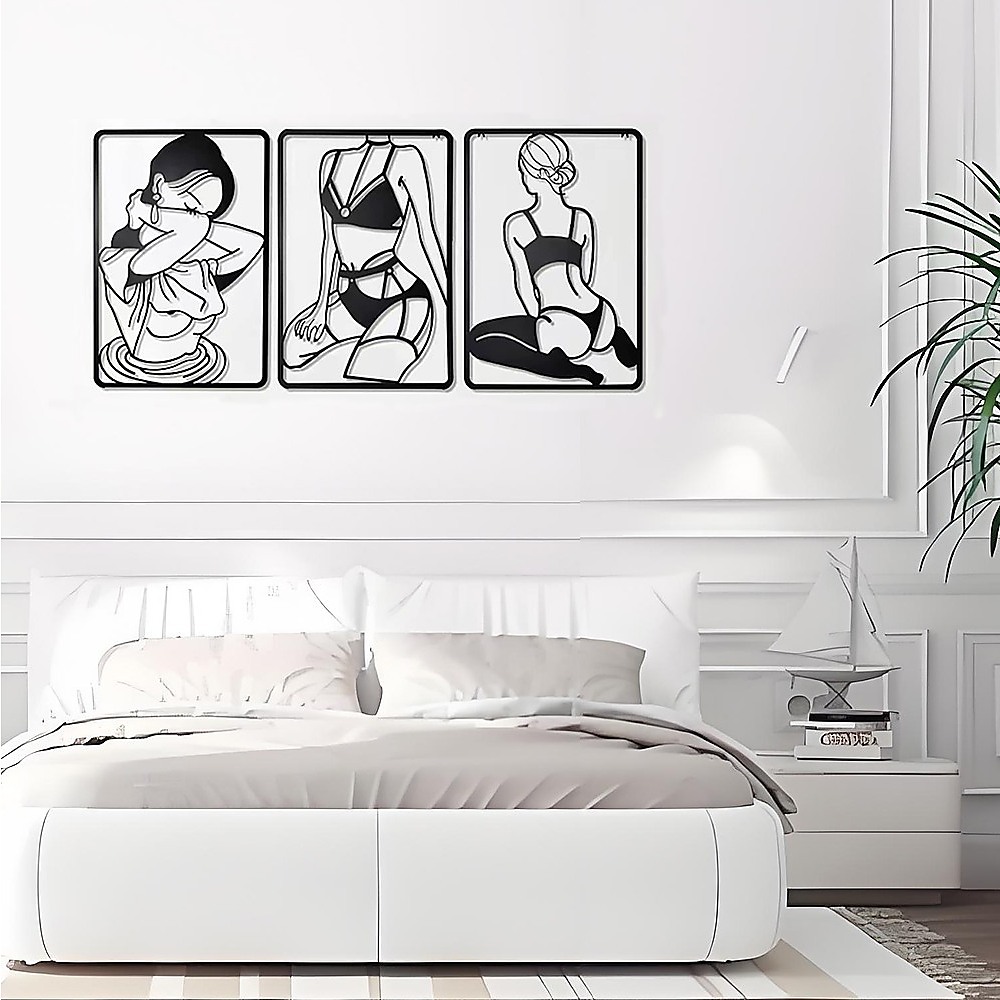 This 3-piece modern metal wall art decor features an abstract minimalist design that combines wire art with unique elements, creating an elegant and eye-catching centerpiece for your home or office. Its contemporary style adds a touch of sophistication to various spaces, making it suitable for different interior settings.