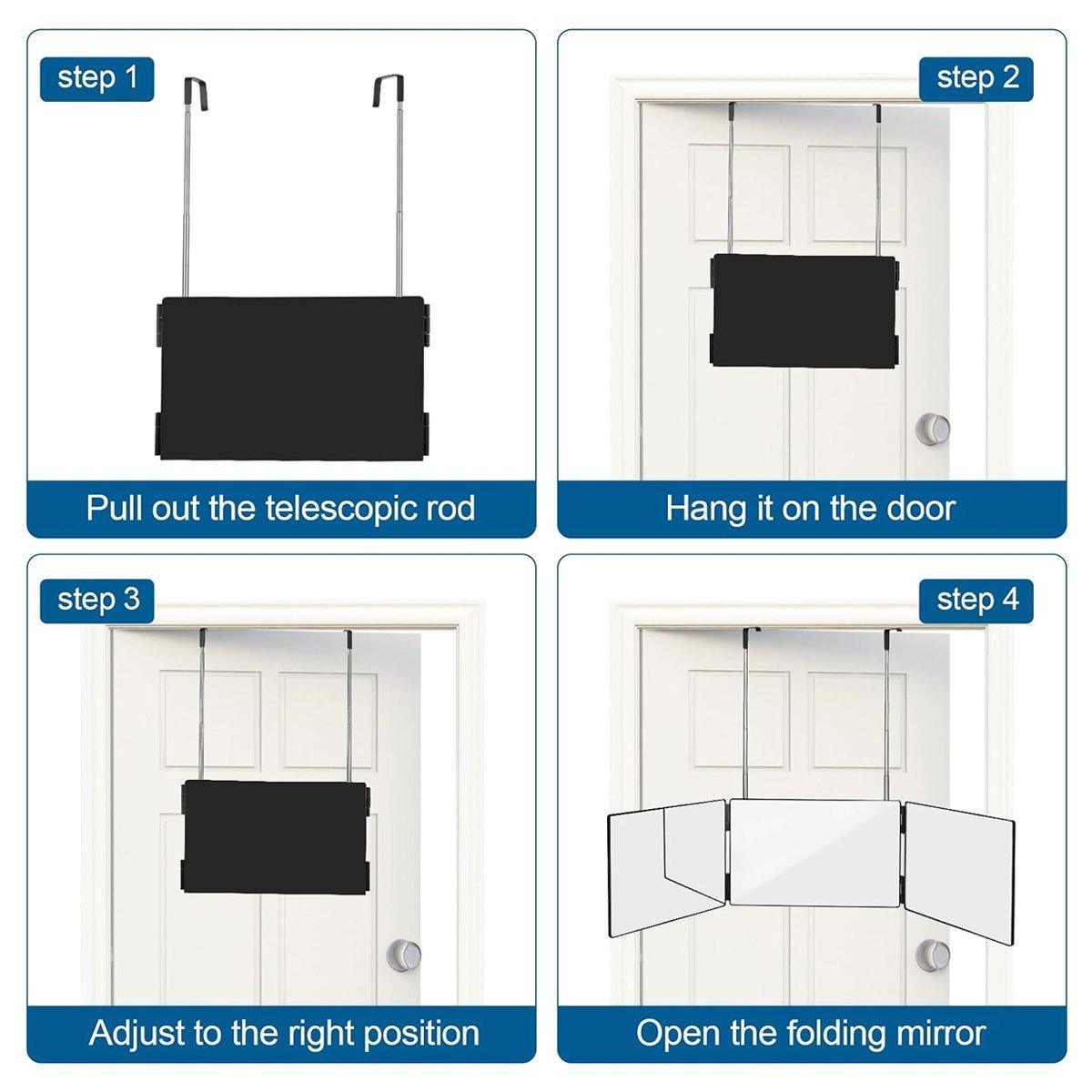 3Way Makeup Mirror for Hair Cutting Styling Hanging Beauty Tool Adjustable