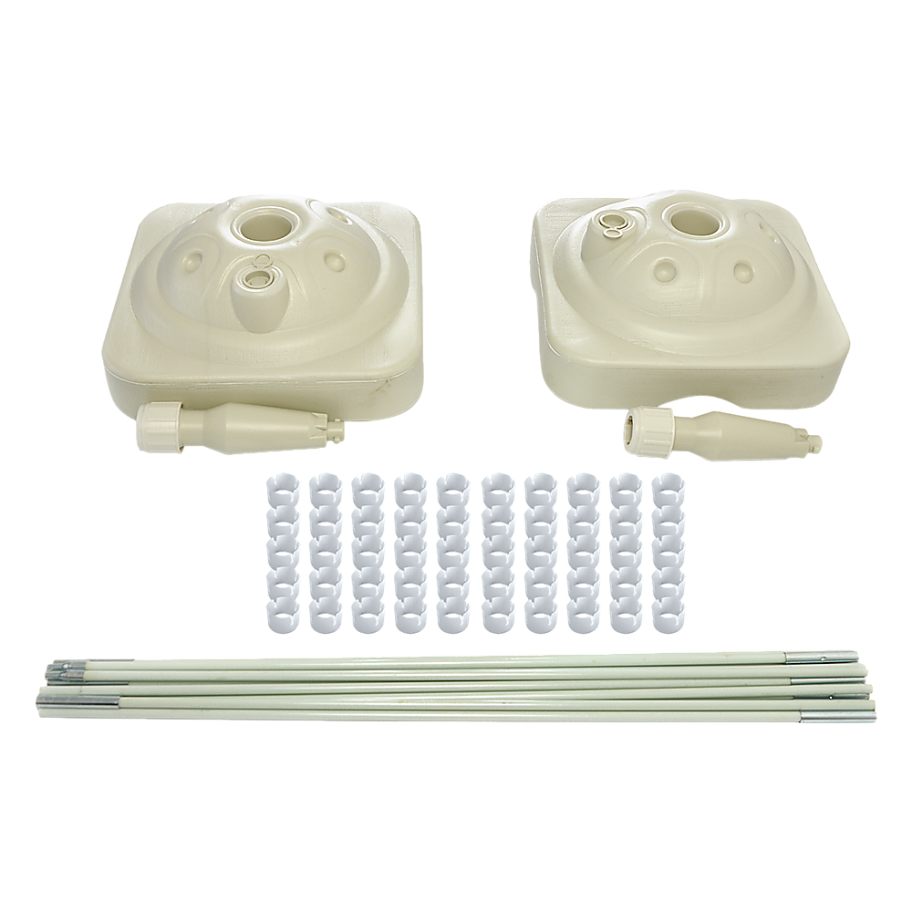 - Includes 2 bases, 2 connector tubes, 10 connecting rods, and 50 buckles