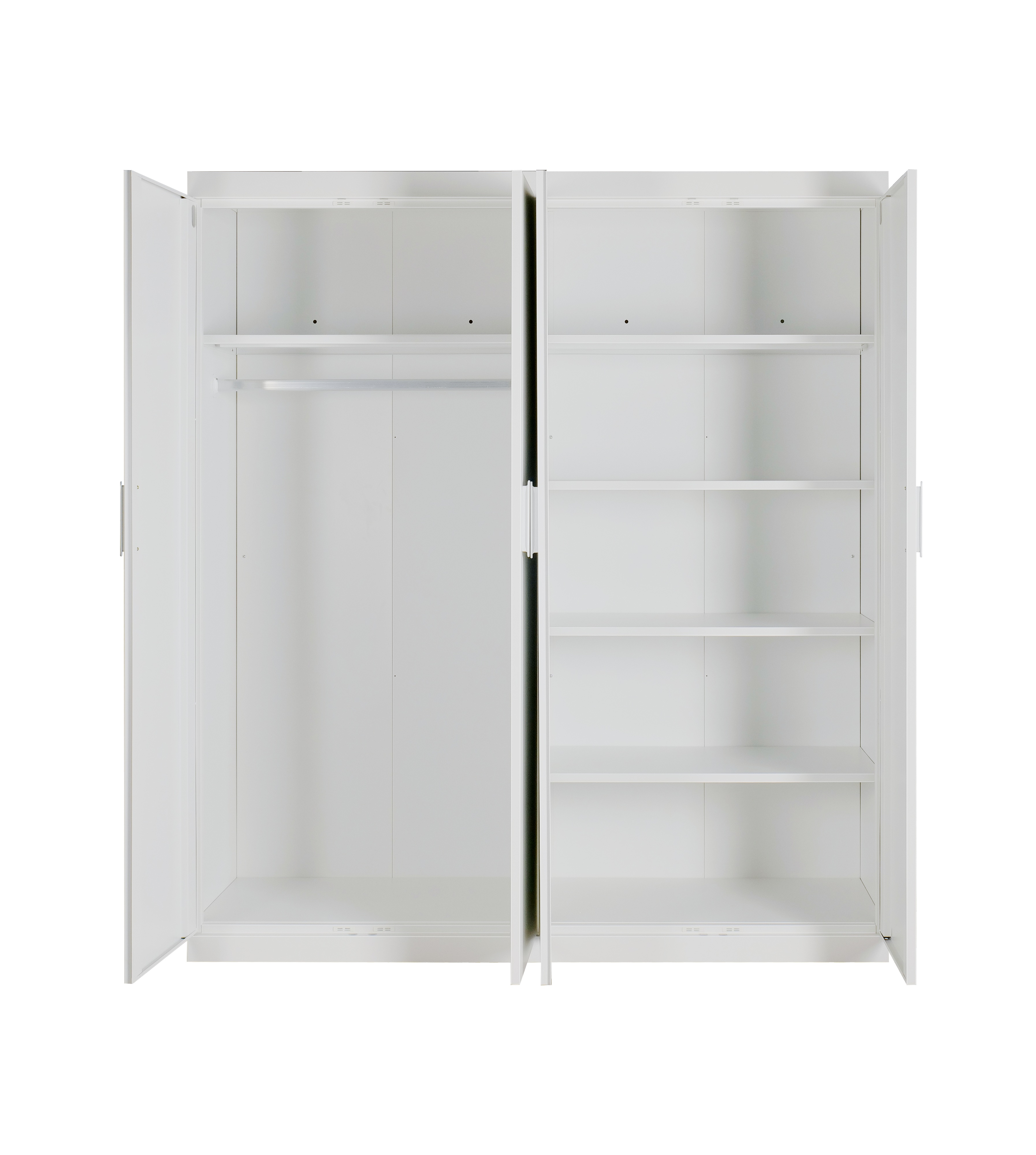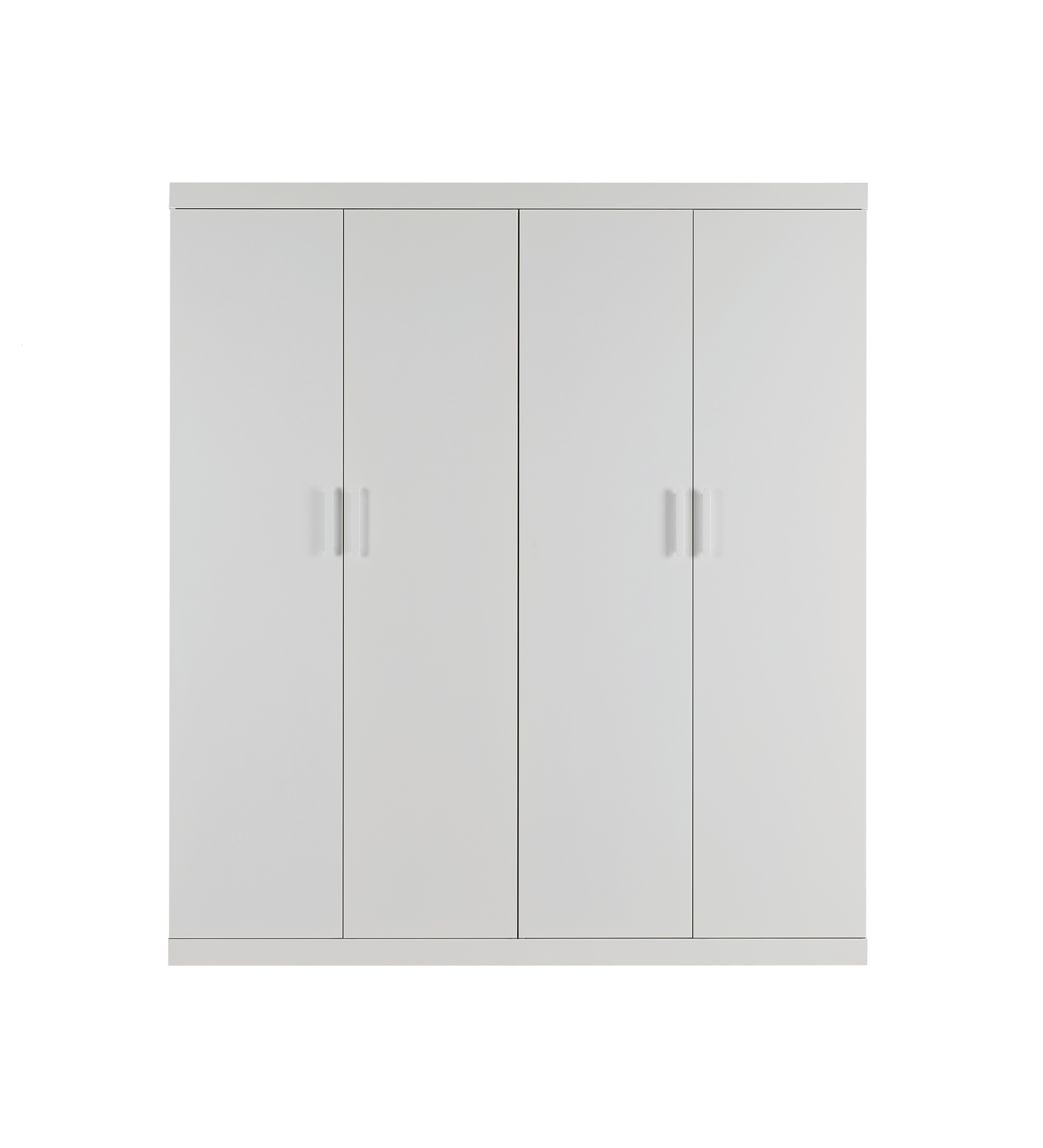 4 Door Wardrobe in White Gloss – Hanging Rail, Shelves & White Handles