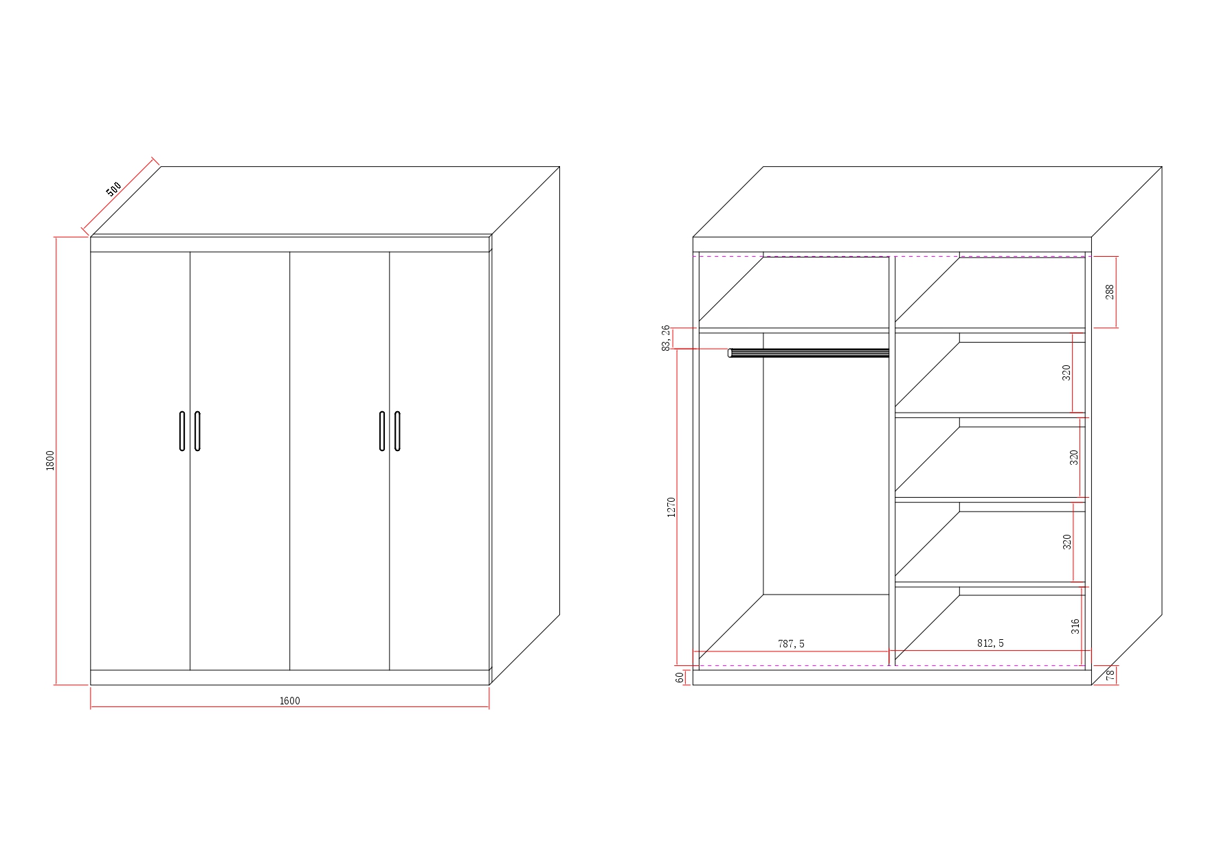 - Overall dimensions: 160 x 50 x 180 centimeters