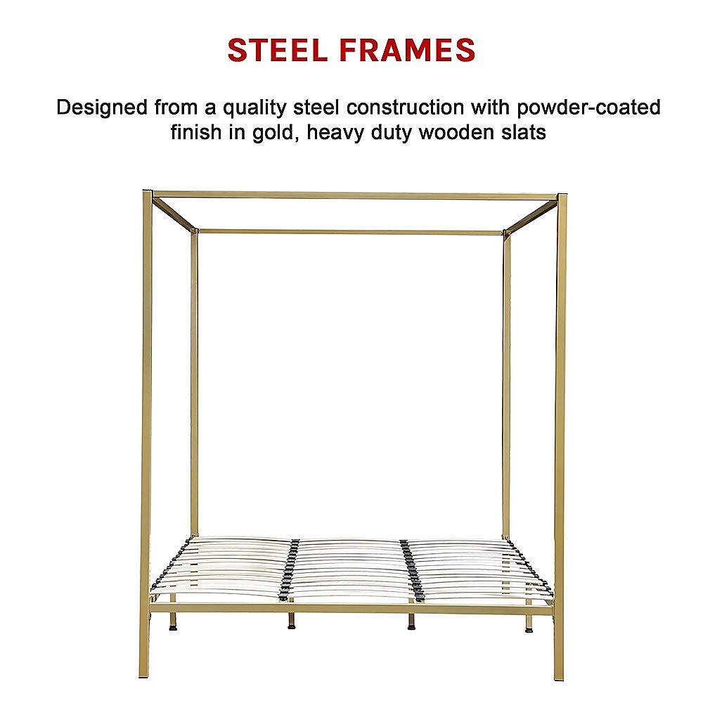 This four poster king bed frame combines classic elegance with modern durability. Its versatile design allows it to complement various bedroom styles, whether you prefer a contemporary look or a romantic, draped aesthetic. The sturdy metal construction ensures long-lasting stability and support, making it an ideal choice for a luxurious and reliable sleeping solution.